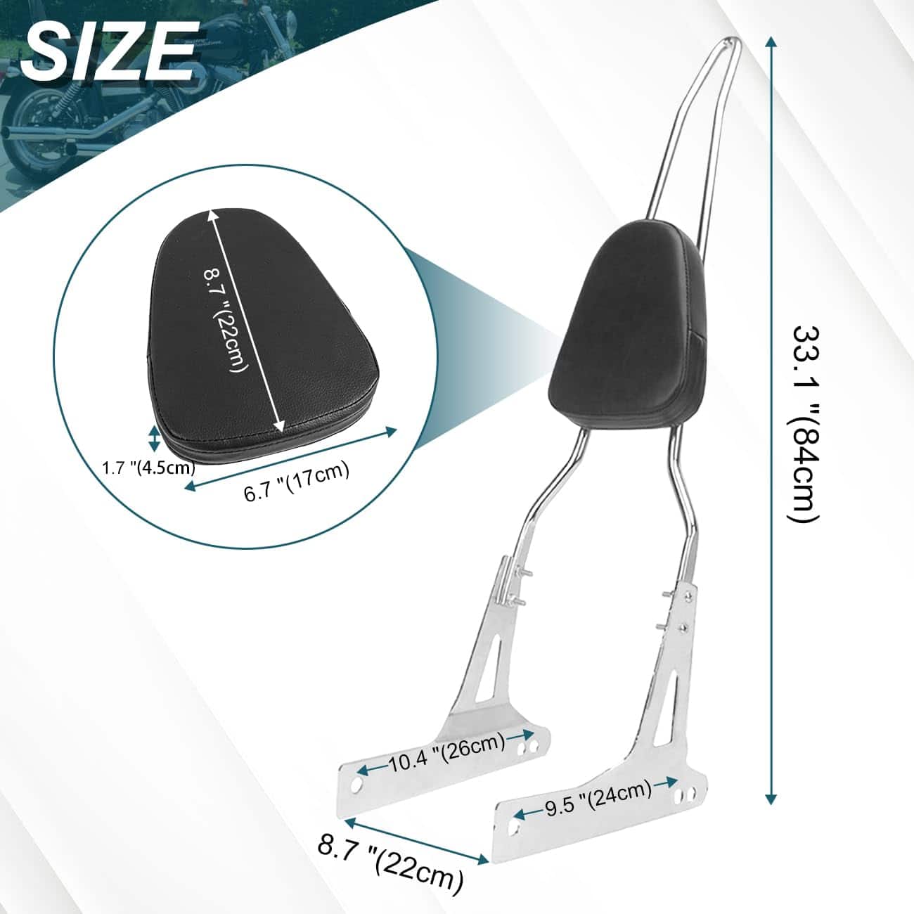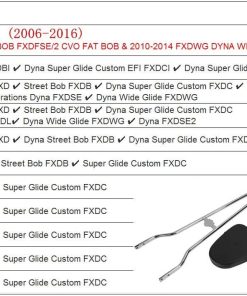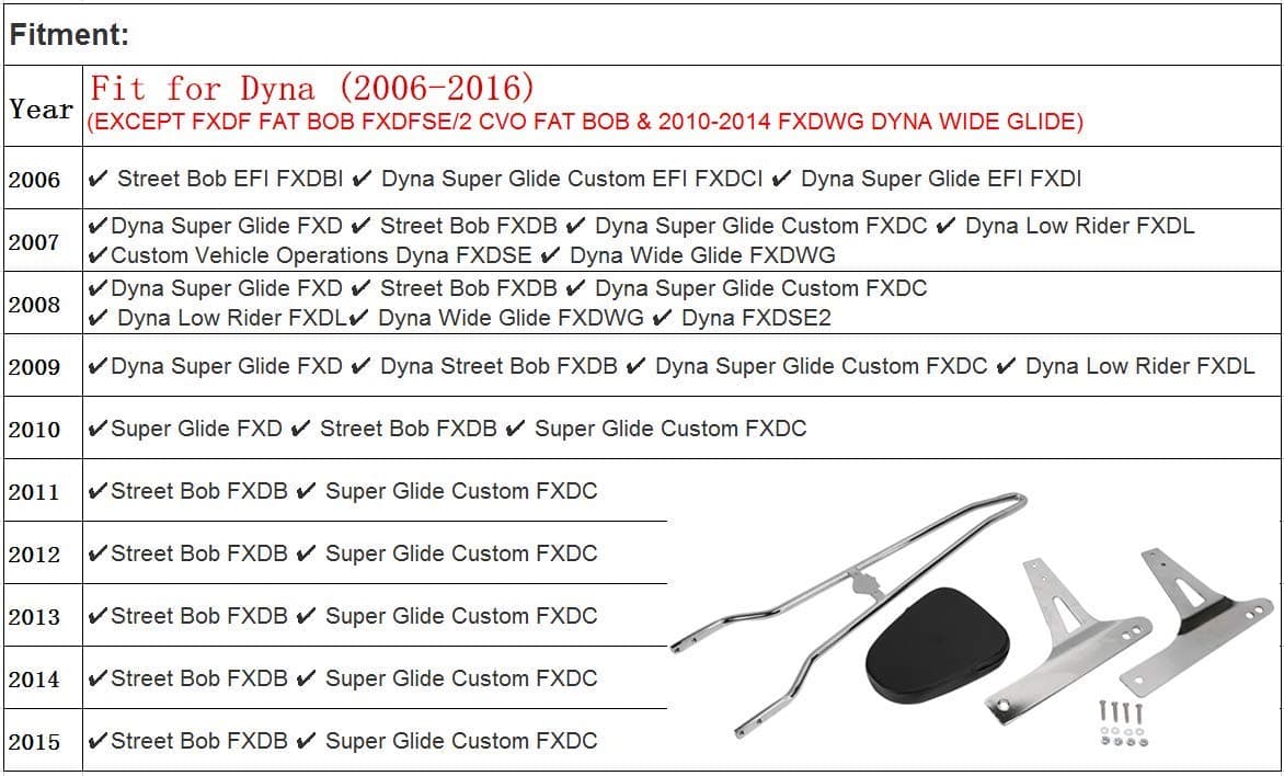 Perfecta decoración para tu motocicleta. Fácil de instalar, en buenas condiciones de trabajo. Respaldo/Sissy Bar de alta calidad cromado con almohadilla. Kit de almohadilla desmontable de respaldo para pasajero trasero de mercado de accesorios. Barra delgada, ángulo de patada superior estilizado para un aspecto clásico bobber. Relleno de esponja en el cojín, lo suficientemente suave para proporcionar un soporte completo a la espalda baja. Mejora la comodidad del pasajero trasero en viajes largos. Las placas laterales estándar fijan el respaldo en los agujeros de montaje originales, desmontables. Compatibilidad: Se ajusta a Dyna (2006-2016) (EXCEPTO FXDF FAT BOB, FXDFSE/2 CVO FAT BOB & 2010-2014 FXDWG DYNA WIDE GLIDE) 2015 – Street Bob FXDB, Super Glide Custom FXDC 2014 – Street Bob FXDB, Super Glide Custom FXDC 2013 – Street Bob FXDB, Super Glide Custom FXDC 2012 – Street Bob FXDB, Super Glide Custom FXDC 2011 – Street Bob FXDB, Super Glide Custom FXDC 2010 – Super Glide FXD, Street Bob FXDB, Super Glide Custom FXDC 2009 – Dyna Super Glide FXD, Dyna Street Bob FXDB, Dyna Super Glide Custom FXDC, Dyna Low Rider FXDL 2008 – Dyna Super Glide FXD, Street Bob FXDB, Dyna Super Glide Custom FXDC, Dyna Low Rider FXDL, Dyna Wide Glide FXDWG, Dyna FXDSE2 2007 – Dyna Super Glide FXD, Street Bob FXDB, Dyna Super Glide Custom FXDC, Dyna Low Rider FXDL, Custom Vehicle Operations Dyna FXDSE, Dyna Wide Glide FXDWG 2006 – Street Bob EFI FXDBI, Dyna Super Glide Custom EFI FXDCI, Dyna Super Glide EFI FXDI Por favor, verifique tres aspectos de información al comprar: número de piezas para vehículos, forma, tamaño, tabla de compatibilidad de modelo y año.