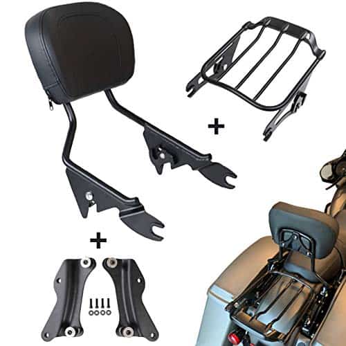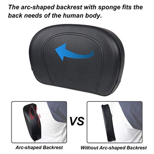 1. Tecnología de Procesamiento: El chapado puede ser probado por aerosol de sal 96 horas neutro, capa de cobre 35um. Níquel 18um cromo 0.25un, grado de chapado 8 arriba. Los fabricamos con técnicas profesionales y material de gran calidad, acabado negro promete no rayar la superficie, duradero y resistente. 2. Característica: El respaldo desmontable con parrilla viene con almohadilla de calidad superior y duradera con cremallera, que te facilita la desinstalación y uso. Mejora la apariencia de tu motocicleta y añade un efecto visual de alta gama a tu motocicleta. 3. Fácil Instalación: El juego de respaldo con parrilla se puede instalar o quitar de la motocicleta en segundos. La almohadilla curva del respaldo con esponja en el interior proporciona comodidad a los pasajeros en viajes de larga distancia. Ajuste perfecto, siguiendo las líneas aerodinámicas y delgadas de la parte trasera de la motocicleta. 4. Compatibilidad: Compatible con los modelos Touring Street Glide Road Glide Road King Electra Glide de 2014 a 2023. Nota: El respaldo no es compatible con los modelos Special CVO Classic y Ultra, ya que el kit de hardware de acoplamiento de los modelos CVO y Special es más ancho que el de los modelos normales, aproximadamente 1.5′. 5. Paquete Incluido: 1X Respaldo Desmontable con Parrilla (Clip de Enganche del Portaequipajes incluido, Nota: El respaldo se entrega desmontado), 1X Pestaña de Aire para Portaequipajes Dos Arriba, 2x Kit de Hardware de Acoplamiento de 4 Puntos.