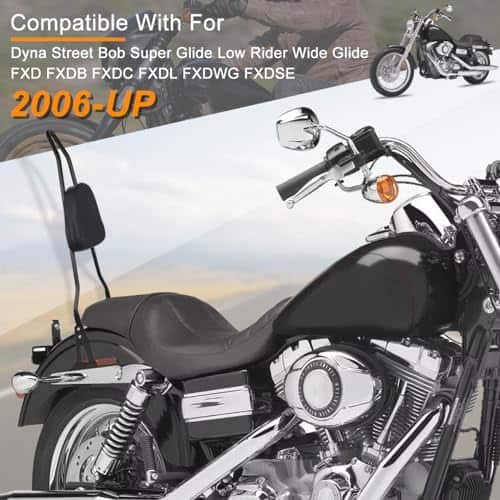 Perfecta decoración para tu motocicleta. Fácil de instalar, en buen estado de funcionamiento. Respaldo/sissy bar de alta calidad cromado con almohadilla. Kit de almohadilla de respaldo desmontable de pasajero trasero de mercado de accesorios. Barra delgada, ángulo de patada superior estilizado para un look clásico de bobber. Relleno de esponja en el cojín, lo suficientemente suave como para proporcionar apoyo completo en la espalda baja. Mejora la comodidad del pasajero trasero en viajes largos. Las placas laterales estándar fijan el sissy bar en los agujeros de montaje originales, desmontable. Compatibilidad: Se ajusta a Harley Dyna (2006-2016) (EXCEPTO FXDF FAT BOB, FXDFSE/2 CVO FAT BOB y FXDWG DYNA WIDE GLIDE 2010-2014). Por favor, verifique tres aspectos de la información al comprar: número de piezas del vehículo, apariencia, forma, tamaño, tabla de compatibilidad del año del modelo.