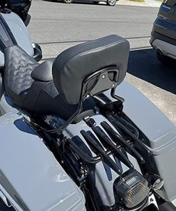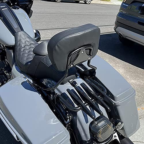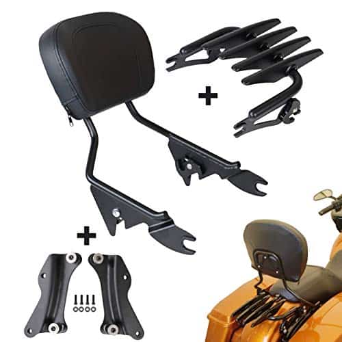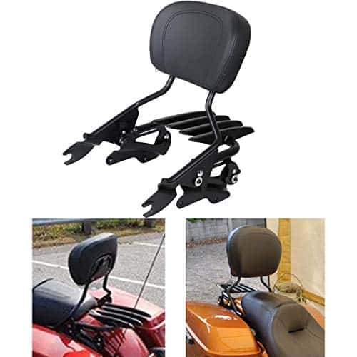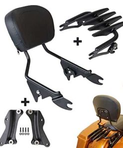 1. Tecnología de Procesamiento El recubrimiento puede ser probado por pulverización de sal 96 horas neutro, capa de cobre 35um. Níquel 18um cromo 0.25un, grado de recubrimiento 8 por encima. Los fabricamos con técnicas profesionales y material de gran calidad, duradero y resistente. 2. Característica El respaldo desmontable con respaldo tiene una almohadilla de calidad superior y duradera con cremallera, lo que le facilita el desmontaje y el uso. Actualice el aspecto de su motocicleta y añada un efecto visual de alta gama a su motocicleta. 3. Compatibilidad El respaldo es compatible con los modelos Harley Touring Street Glide Road Glide Road King Electra Glide de 2014-2023. Nota: El respaldo no es compatible con los modelos Special CVO Classic y Ultra, ya que el kit de anclaje de los modelos CVO y Special es más ancho que el de los modelos normales en aproximadamente 1.5′. 4. Alta Calidad El respaldo y la parrilla para equipaje están hechos de hierro de alta calidad, el kit de anclaje está hecho de aluminio billet. La almohadilla del respaldo tiene esponja suave en su interior, proporciona a los pasajeros un excelente soporte para la espalda para mejorar la comodidad en viajes largos. 5. Paquete Incluido 1X Respaldo Desmontable con Respaldo (Clip de Enganche de la Parrilla para Equipaje incluido, Nota: El respaldo viene desmontado), 1X Parrilla para Equipaje Stealth Desmontable, 2x kit de anclaje de 4 puntos.