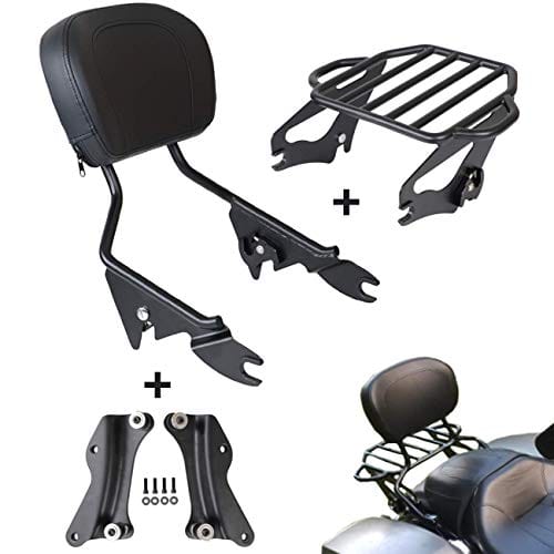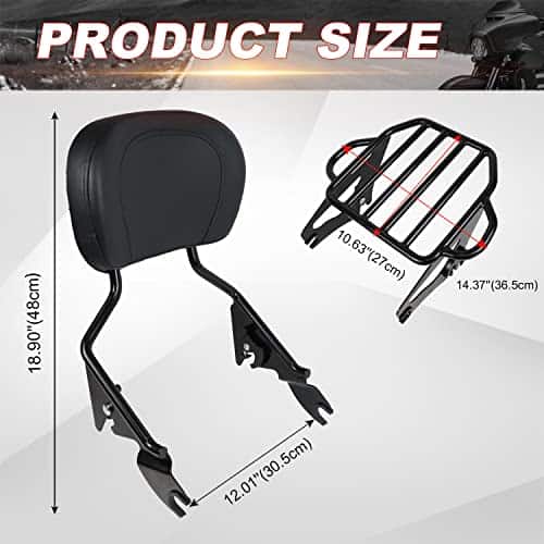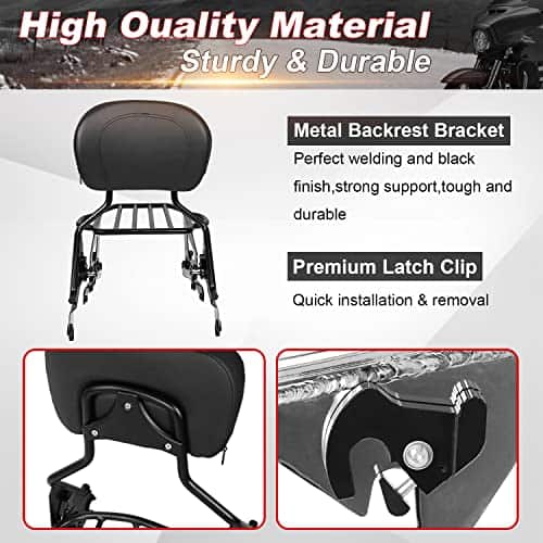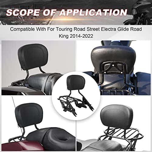 1. Tecnología de Procesamiento Cromado puede ser probado por rociado de sal 96 horas neutral, capa de cobre 35um. Níquel 18um cromo 0.25un, grado de cromado 8 Por encima. Fabricamos el juego de respaldo sissy bar con técnicas profesionales y material de gran calidad, acabado negro promete sin arañazos en la superficie, duradero y resistente. 2. Característica El respaldo desmontable sissy bar viene con una almohadilla de calidad superior y duradera con cremallera, lo que facilita la extracción y el uso. Mejora la apariencia de tu motocicleta y agrega un efecto visual de alta gama a tu motocicleta. 3. Instalación Fácil El respaldo sissy bar se puede instalar o quitar de la motocicleta en segundos. La almohadilla del respaldo curvo con esponja en el interior proporciona comodidad a los pasajeros en viajes de larga distancia. Ajuste perfecto, siguiendo las líneas aerodinámicas y delgadas de la parte trasera de la motocicleta. 4. Compatibilidad El respaldo es compatible con los modelos Touring Street Glide Road Glide Road King Electra Glide 2014-2023. Nota: El respaldo no es compatible con los modelos Special CVO Classic y Ultra. Debido a que el kit de hardware de anclaje de los modelos CVO y Special es más ancho que los modelos normales en aproximadamente 1.5». 5. Paquete Incluido 1X Respaldo Desmontable Sissy Bar (Clip de Enganche de Portaequipajes incluido. Nota: El respaldo viene desmontado). 1X Rack de Equipaje 2-Up, 2x Kit de Hardware de Anclaje de 4 puntos.