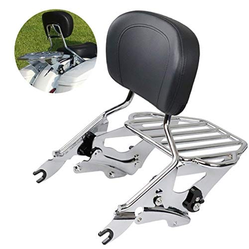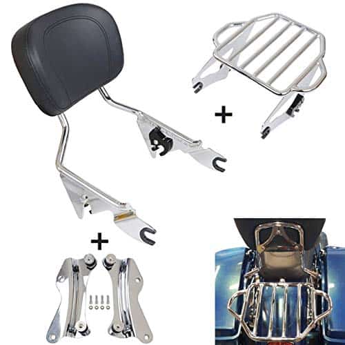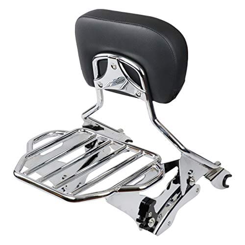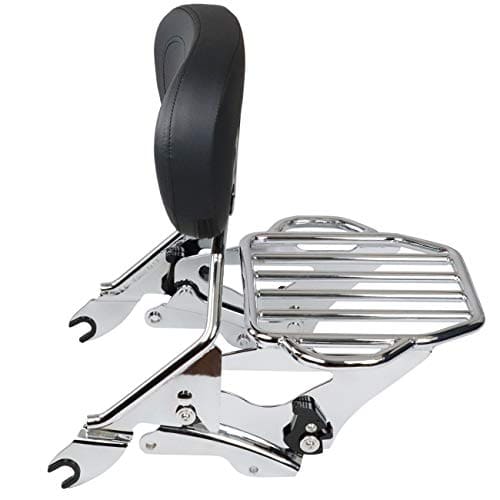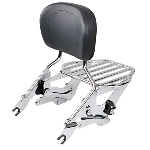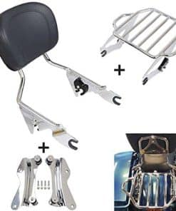 1. Respaldo de alta calidad y parrilla para equipaje hechos de hierro de alta calidad, el hardware de acoplamiento está hecho de aluminio billet. El respaldo sissy bar viene con una almohadilla de calidad superior y duradera con cremallera, conveniencia para desmontar su uso. 2. La tecnología de procesamiento El cromado puede ser probado en un aerosol de sal 96 horas neutral, capa de cobre 35um. 18um de níquel cromo 0.25un, categoría de cromado 8 superior. Los fabricamos con técnicas profesionales y materiales de gran calidad, el acabado cromado promete no rayar la superficie, duradero y resistente. 3. Compatibilidad La barra sissy bar es compatible con los modelos Touring Electra Glide Road Glide Road King Street Glide de 2014-2023. Nota: El respaldo no es compatible con los modelos especiales CVO Classic y Ultra. Debido a que el kit de hardware de acoplamiento para los modelos CVO y especiales es más ancho que los modelos normales en aproximadamente 1.5′. 4. Fácil de instalar ¡Rápido! El juego de respaldo sissy bar se puede instalar o quitar de la motocicleta en segundos. La almohadilla de respaldo curvada con esponja en el interior proporciona comodidad a los pasajeros en viajes de larga distancia. 5. Contenido del paquete 1X Respaldo sissy bar desmontable (se incluyen clips de cierre de la parrilla para equipaje, Nota: el respaldo está desmontado). 1x Parrilla para equipaje dos en uno, 2x kit de hardware de acoplamiento de 4 puntos. (Garantía de calidad de 18 meses).