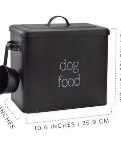 AuldHome Retro Dog Food Canister es perfecto para los amantes de las mascotas que buscan un toque de estilo de granja moderna en su hogar. Con un diseño clásico vintage y decoración contemporánea, este bote de almacenamiento de comida para perros combina esmalte negro mate con letras blancas de estilo de máquina de escribir para un aspecto elegante. Con una capacidad de 9 cuartos o 36 tazas, es ideal para perros pequeños a medianos. El tamaño total con la tapa y las asas es de 10.75 pulgadas de alto por 13 pulgadas de largo por 5.9 pulgadas de ancho, mientras que el tamaño del bote es de 10.6 pulgadas de largo por 8.75 pulgadas de alto, excluyendo la tapa y las asas. Además, viene con una cuchara colgante de medición que cuelga en el asa y mide 2/3 de taza, lo que lo hace conveniente para su uso en la encimera. Forma parte de la colección de esmalte negro AuldHome Design, que incluye una variedad de artículos para la cocina y el hogar. ¡Haz que la hora de la comida de tu mascota sea aún más especial con este elegante bote de almacenamiento de comida para perros!