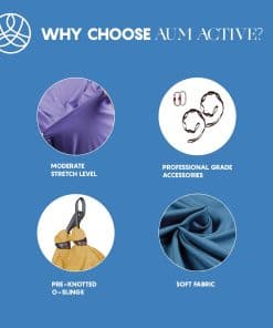 Aum Active Aerial Silk Yoga Hammock & Swing es la opción ideal para disfrutar de tu viaje de yoga aéreo con nuestras premium telas de seda. Fabricadas en Tricot, nuestras telas de seda aérea son suaves, duraderas y lo suficientemente anchas con el estiramiento justo para todos los niveles de práctica. Comienza de inmediato con nuestra hamaca de yoga aéreo preanudada. Ajusta como desees con nuestras correas de extensión de 6 bucles y configúrala en cualquier lugar en interiores o exteriores (altura máxima: 11 pies). No solo para yoga, prueba diferentes poses de yoga aéreo, entrena tu equilibrio central, alivia el dolor de espalda, úsala como columpio terapéutico, o simplemente relájate en ella. ¡Usa sedas aéreas para ejercicio en casa o llévalas al estudio – practica donde quieras! Toma tu propia decisión, ¡es tu elección! Gira y gira como quieras, ¡nuestras hamacas de yoga aéreo son súper resistentes! Pueden soportar hasta 500 libras, mientras que otros accesorios de rigging pueden soportar más de 2000 libras. Bonos incluidos: juego completo de tela de seda aérea (13×9 pies), 2 mosquetones, 2 correas de extensión (3 pies), 2 anillos en O, y una guía manual. ¡El soporte de montaje NO ESTÁ INCLUIDO!