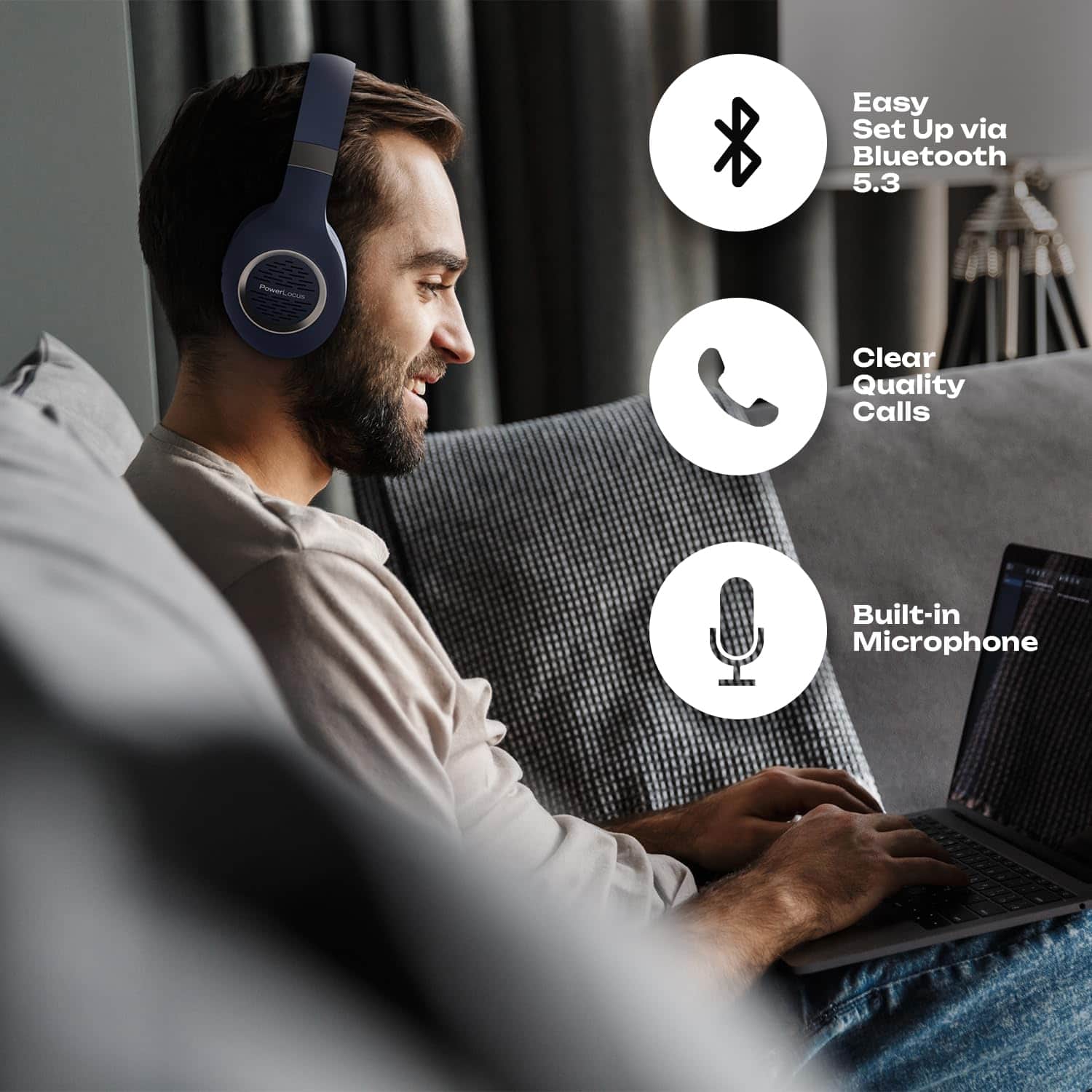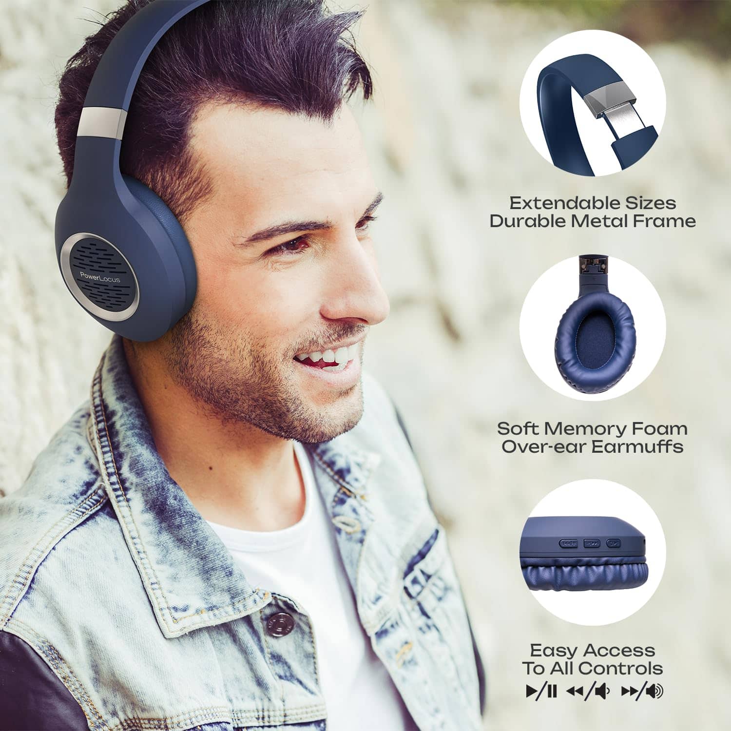 Auriculares Bluetooth Over-Ear, PowerLocus Auriculares