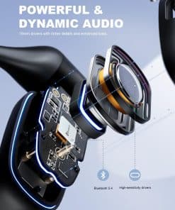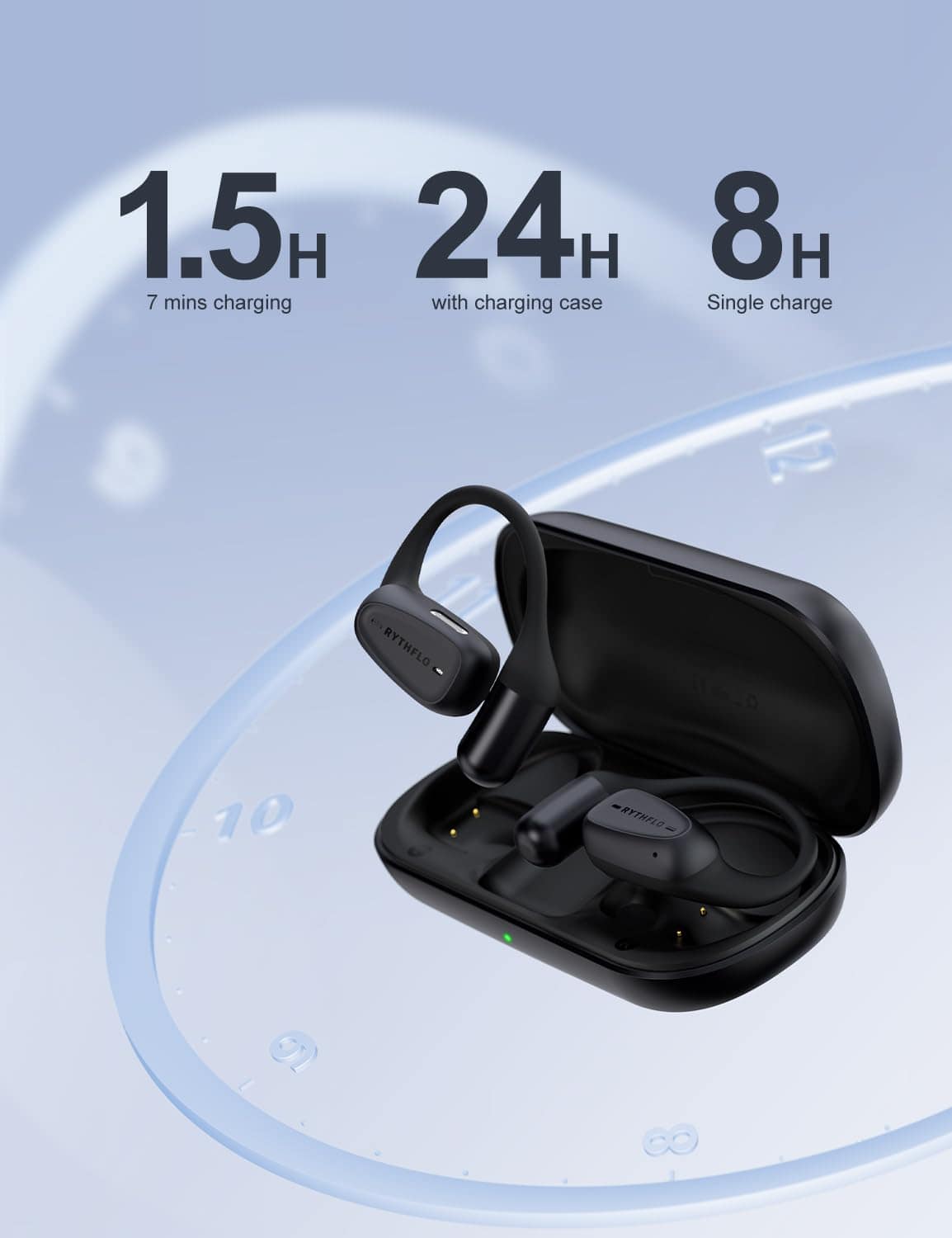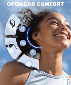 Auriculares Bluetooth Rythflo con tecnología avanzada que combina drivers duales de 16mm y sonido direccional para ofrecer una experiencia auditiva excepcional. Los ganchos para las orejas de silicona ergonómicos garantizan un ajuste seguro y estable durante cualquier actividad, mientras que el diseño abierto y ultra ligero de solo 6.7g garantiza comodidad durante todo el día. Además, la resistencia al agua y al sudor IPX7 permite disfrutar de la música incluso en condiciones adversas. La carga sobre la marcha con hasta 24 horas de escucha y una carga rápida de 7 minutos proporciona una conveniencia adicional. Con la última tecnología Bluetooth 5.4, las conexiones más rápidas y precisas están garantizadas. Compre con confianza gracias a la garantía de 1 año incluida. Manténgase seguro y consciente de su entorno mientras disfruta de la música con estos auriculares Bluetooth de alta calidad.