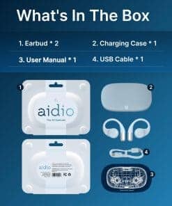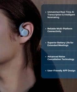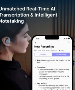 1. TRANSCRIPCIÓN EN TIEMPO REAL POR IA Y TOMA DE NOTAS: Los auriculares X1 de Aidio te permiten experimentar una conversión ultra rápida de voz a texto en tiempo real con una precisión de hasta el 98%. Esto resulta especialmente útil para capturar cada detalle durante tus llamadas de conferencia telefónicas o por PC, sin retrasos ni errores.