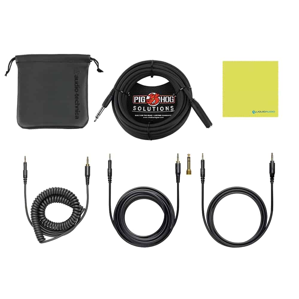 Exclusivamente de Liquid Audio, este paquete incluye los auriculares de estudio profesionales Audio Technica ATH-M50X Ice Blue, un cable de extensión de auriculares de 25 pies de Pig Hog, cables desmontables (incluye cable en espiral de 1.2 m – 3.0 m, cable recto de 3.0 m y cable recto de 1.2 m), adaptador de 1/4 de rosca, estuche de transporte y paño de pulido líquido. ¡Prepárate para cualquier situación con este paquete de alto valor! Los M50x son una de nuestras soluciones de audio más aclamadas y nuestros auriculares más vendidos. Basados en los ATH-M50, los M50x incluyen un cable desmontable mejorado para mayor comodidad y versatilidad, perfecto para el estudio, juegos o cuando estás en movimiento. Disfruta del aislamiento de ruido pasivo a través de las cómodas copas de oído diseñadas para mantenerte concentrado y en el juego, mientras que sus controladores de gran apertura entregan nuestra firma de sonido amada por la industria. Diseñados para ofrecer una experiencia de sonido superior a un precio asequible, los M50x han sido ampliamente aclamados en línea por profesionales, oyentes casuales y streamers. Desde la escucha diaria y el transporte hasta los juegos o las grabaciones en estudio, estás en buenas manos con los M50x, con una calidad de construcción e ingeniería de sonido codiciadas que son elogiadas por expertos en audio y profesionales año tras año.