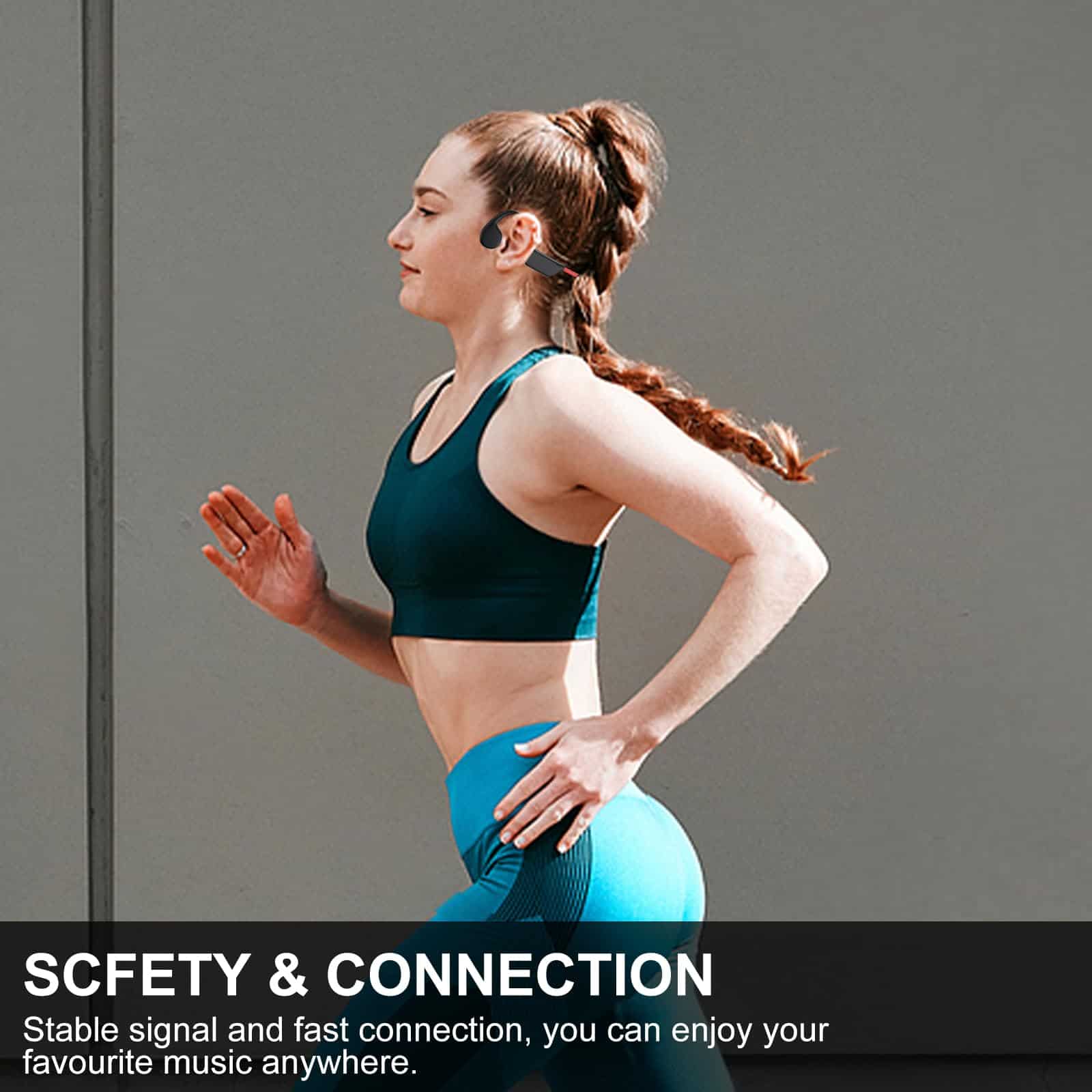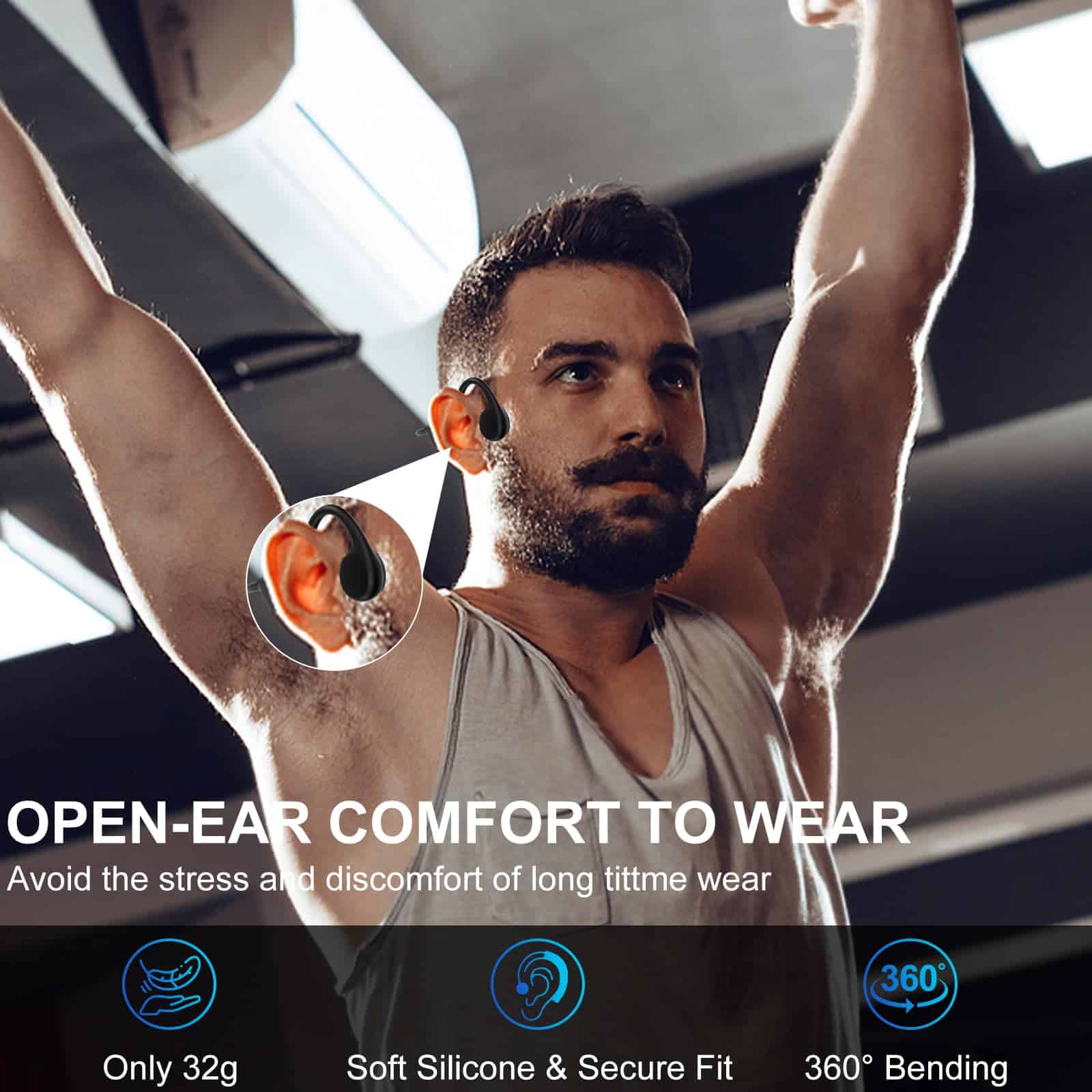 3. Conducción ósea y más seguro: los auriculares de natación de conducción ósea están hechos de silicona suave y pesan solo 30g para una comodidad durante todo el día. A diferencia de los auriculares o auriculares tradicionales, el auricular abierto evita el estrés y la incomodidad de usar durante mucho tiempo, y no interferirá con sombreros o gafas. Mantente consciente de tu entorno mientras disfrutas de la música, ideal para actividades en interiores y al aire libre como correr, andar en bicicleta, caminar, hacer ejercicio y viajar, asegurando la seguridad dondequiera que vayas.