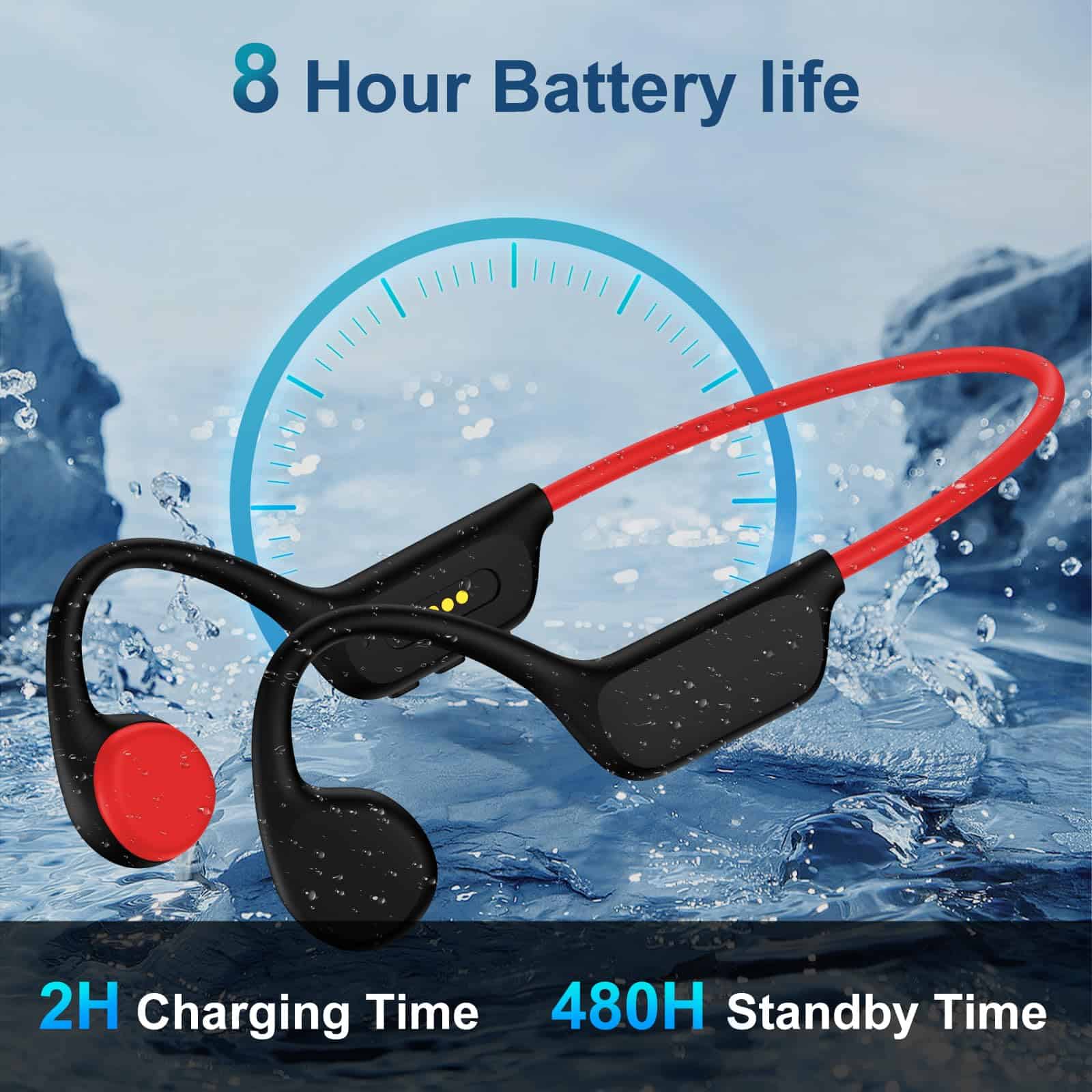 1. Auriculares impermeables IPX8: los auriculares de natación son ultra impermeables con IPX8, resistentes al sudor, lluvia y polvo, ideales para nadar, bucear y correr. Puede disfrutar de música, podcasts o audiolibros mientras nada. Los auriculares de natación se pueden usar bajo el agua a 3 m de profundidad sin impacto, incluso sumergidos o bajo alta presión de agua. Manteniéndote motivado y brindándote una experiencia más placentera ya sea que estés entrenando o nadando.