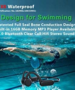 1. Auriculares de natación profesionales certificados IP8 a prueba de agua, a prueba de polvo y a prueba de sudor, disfruta libremente de la música durante la natación y al hacer otros deportes. El diseño patentado de la cámara de sonido sellada permite que los auriculares permanezcan bajo el agua durante mucho tiempo. Este auricular está diseñado para el deporte, te desea que disfrutes de la vida con este auricular. 2. Verdadera conducción ósea Auriculares de conducción ósea transmiten el sonido al oído interno a través de las fosas nasales mediante vibración. El diseño de oído abierto ayuda a los oídos a deshacerse de cualquier incomodidad auditiva para disfrutar de música durante mucho tiempo. Evita la interferencia del ruido durante la transmisión de sonido y mantiene la fidelidad del sonido. 3. Modo Bluetooth y Modo MP3 intercambiable Este auricular tiene dos modos, puedes conectarlo a tu teléfono celular y también puedes guardar tus canciones favoritas en el auricular y reproducirlas directamente sin conectar a otro dispositivo (función MP3). La memoria grande de 16GB integrada te permite guardar más de 1500 canciones en el interior. También puedes usarlo como una memoria USB si quieres. Proporciona un sonido premium estéreo en llamada. 4. Ligero y sin dolor Ergonómico Diseño de oído abierto, solo 0.07 libras de peso hace que tus oídos no se sientan cargados. El marco de aleación de titanio de alta resistencia y memoria es flexible y duradero, se puede doblar y estirar sin deformarse. Todos los detalles se controlaron estrictamente durante la producción. 5. Batería de 8 horas de duración y Bluetooth 5.0 Alimentado con el avanzado chip Bluetooth 5.0 que es capaz de obtener una conexión rápida y estable con tu teléfono u otro dispositivo. Es compatible con tus smartphones IOS y Android o tabletas y computadoras Mac y PC y laptops.