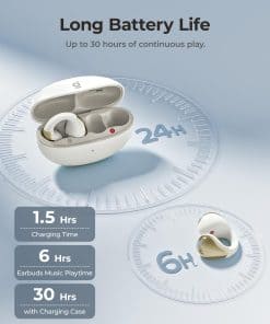 Long-Lasting Battery Life: Enjoy up to 6 hours of listening time on a single charge, with an additional 20 hours provided by the lightweight charging case, ensuring all-day convenience and reliability.
