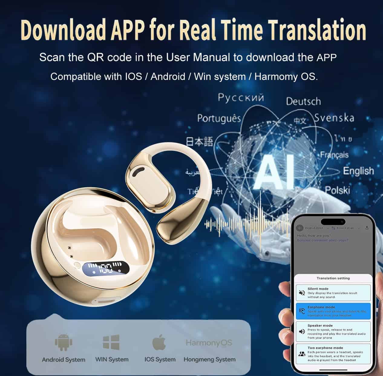 Auriculares de Traducción AI en Tiempo Real, -Dorado