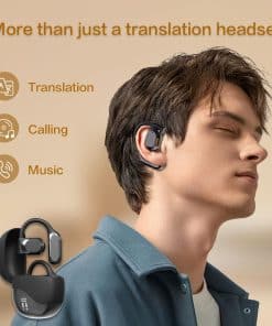 Los auriculares traductores de IA son avanzados auriculares inalámbricos Bluetooth 3 en 1 traductor en tiempo real bidireccional, ofreciendo una comunicación fluida en 140 idiomas y acentos. Con tres modos versátiles Táctil, Hablar Libremente y Altavoz, estos auriculares permiten conversaciones fluidas en cualquier entorno, y se emparejan fácilmente con una aplicación móvil para traducción de voz, texto e imágenes. El diseño ergonómico de los auriculares traductores garantiza un ajuste cómodo y seguro para un uso a largo plazo, mientras que la cancelación activa de ruido (ANC) y el audio de alta fidelidad ofrecen un sonido superior para llamadas, música y traducciones. Con hasta 6 horas de uso, 36 horas con el estuche de carga, carga rápida y un rango de 10 metros, estos auriculares de traducción son el compañero perfecto para una comunicación fluida sobre la marcha.