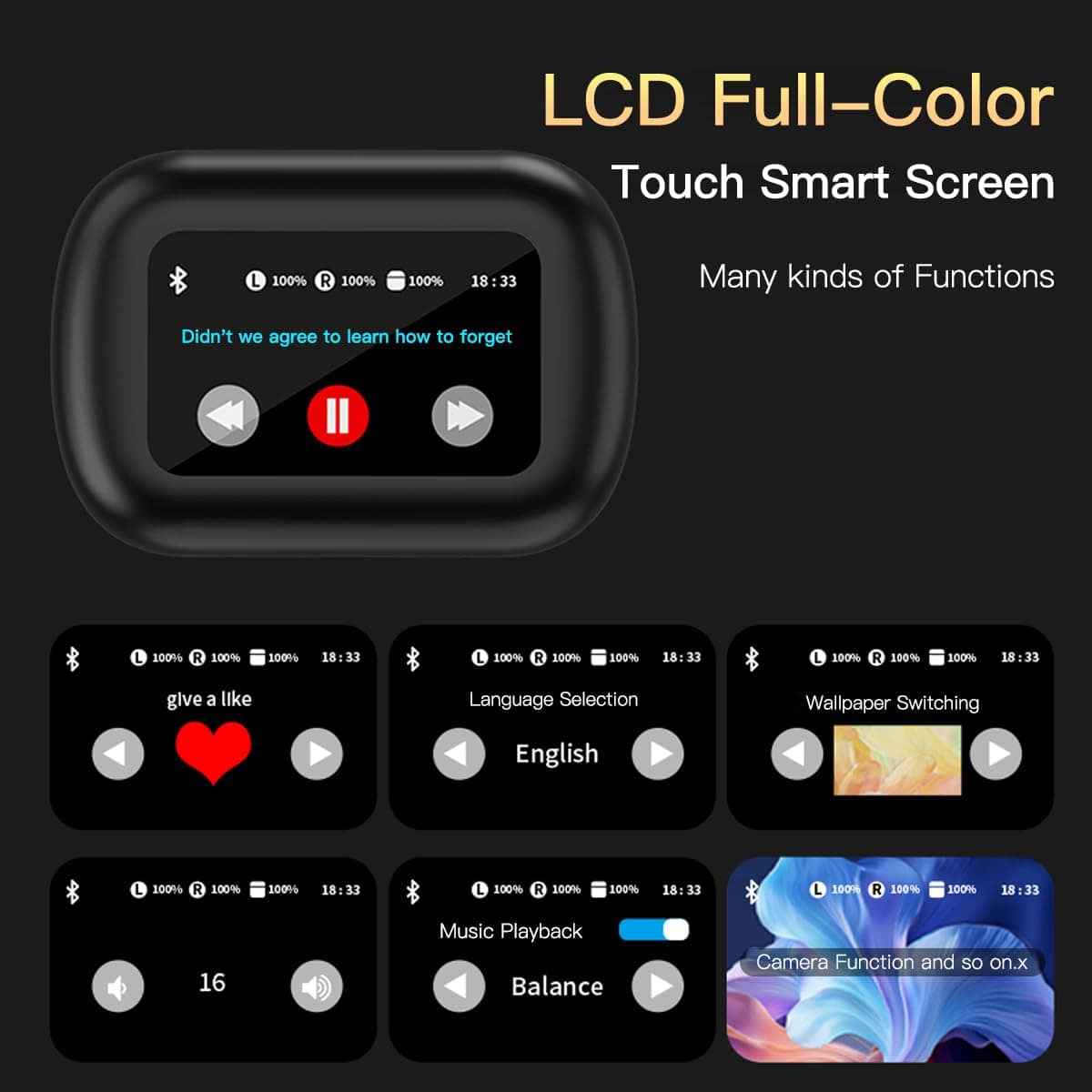 –Los auriculares están equipados con pantallas que muestran información esencial, como la selección de idioma, estado de conexión y progreso de la traducción.