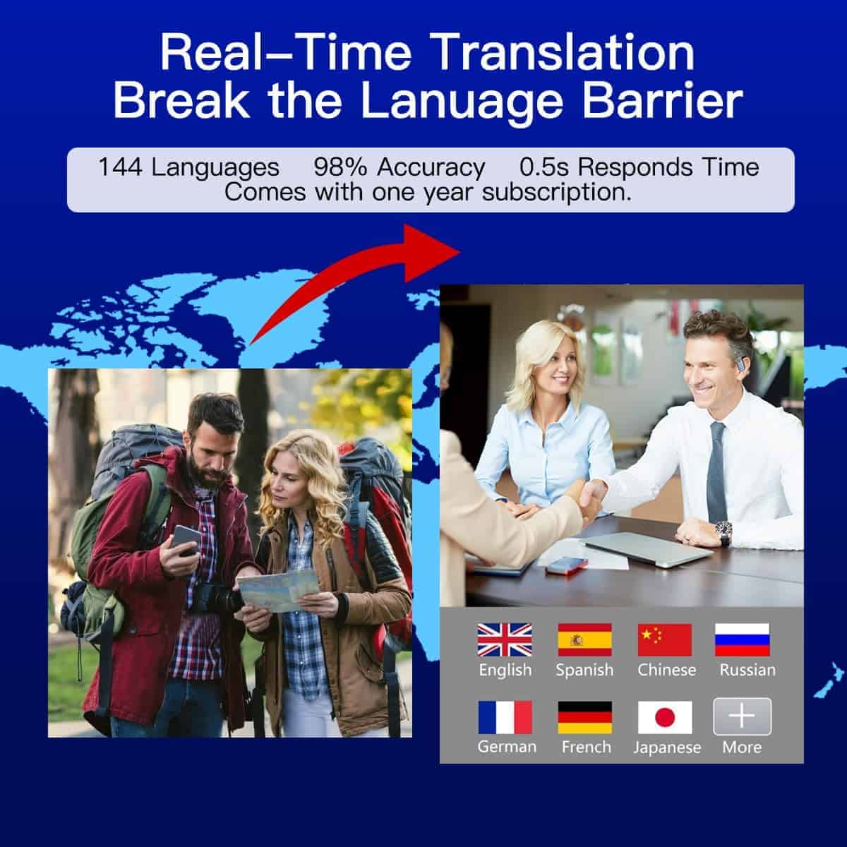 –Soporte Multi-Idioma: Los auriculares admiten una amplia gama de idiomas, haciéndolos adecuados para viajes internacionales, reuniones de negocios y fines educativos.