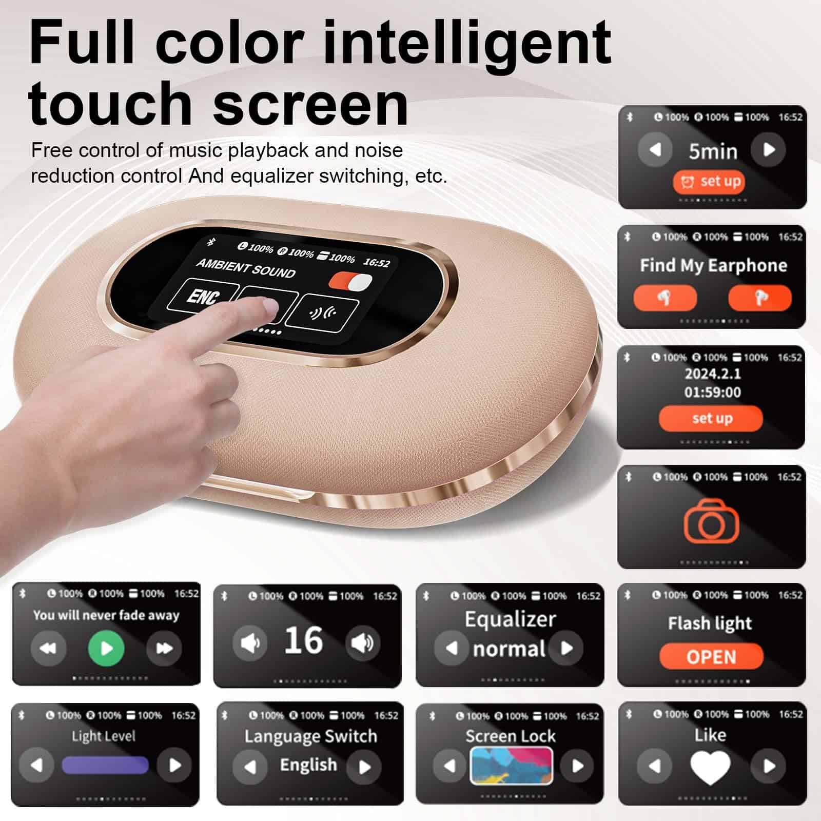 6. Con pantalla: Los auriculares Bluetooth con estuche con pantalla cuentan con una pantalla integrada que proporciona información en tiempo real, como los niveles de batería tanto para los auriculares como para el estuche, estado de conexión u otras notificaciones. Esto mejora la conveniencia y usabilidad al ofrecer un acceso rápido a detalles clave sin necesidad de revisar un dispositivo conectado.