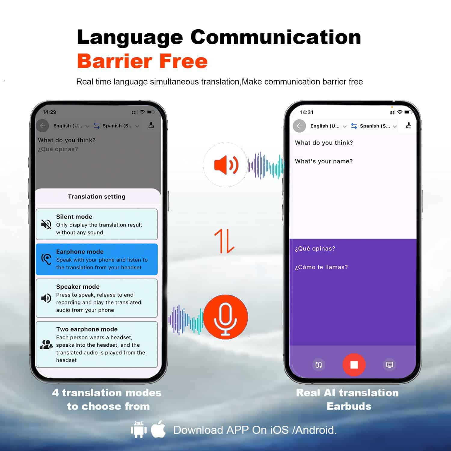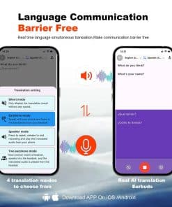 1. Auriculares de traducción 3-en-1 en tiempo real: experimenta una traducción sin problemas en tiempo real, llamadas de voz de alta definición y reproducción de música inmersiva en un dispositivo elegante. Perfecto para trotamundos, profesionales de negocios e interacciones multiculturales, estos auriculares rompen las barreras idiomáticas con interpretación en tiempo real en 144 idiomas.