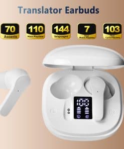 Auriculares de Traducción en Tiempo Real con Conexión Estable, Auriculares Traductores Que Coinciden con el Dispositivo de Traducción a través de la Aplicación, Adecuados para Viajar, Reuniones Transfronterizas y Estudiar. Este auricular traductor de idiomas es una herramienta revolucionaria que facilita la comunicación global. Con soporte para traducción sin conexión en ocho idiomas principales y traducción en línea en 144 idiomas, garantiza una experiencia de traducción precisa y fluida. Además, sus múltiples funciones multifuncionales, como reproductor de música y auriculares para llamadas telefónicas, hacen que sea un dispositivo imprescindible en cualquier situación de comunicación. Ya sea para viajar, participar en reuniones transfronterizas o estudiar un nuevo idioma, estos auriculares traductores ofrecen un nivel sin precedentes de conveniencia y facilidad de uso. Además, con nuestro excelente servicio al cliente disponible las 24 horas, puede confiar en una atención personalizada para todas sus necesidades. ¡No espere más y mejore su experiencia de comunicación global con estos increíbles auriculares de traducción en tiempo real!