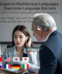 Auriculares de traducción AI Hxswkk para viajes de negocios y cualquier otro escenario en el que necesites comunicarte en diferentes idiomas. Estos auriculares te permiten tener conversaciones fluidas en 144 idiomas diferentes, incluso sin conexión gracias a los paquetes de idiomas offline. Experimenta una traducción rápida y precisa en tiempo real gracias a sus múltiples modos de traducción, que incluyen toque, altavoz, conversación libre y traducción de fotos, lo que garantiza que puedas mantenerte conectado en cualquier situación. La aplicación integrada en los auriculares tiene una función de aprendizaje inteligente que mejora la calidad de la traducción según tus hábitos. Con una larga duración de la batería y un estuche de carga rápida, estos auriculares son ideales para viajar o participar en reuniones internacionales. ¡Mejora tu comunicación en cualquier lugar del mundo con los auriculares de traducción AI de Hxswkk!