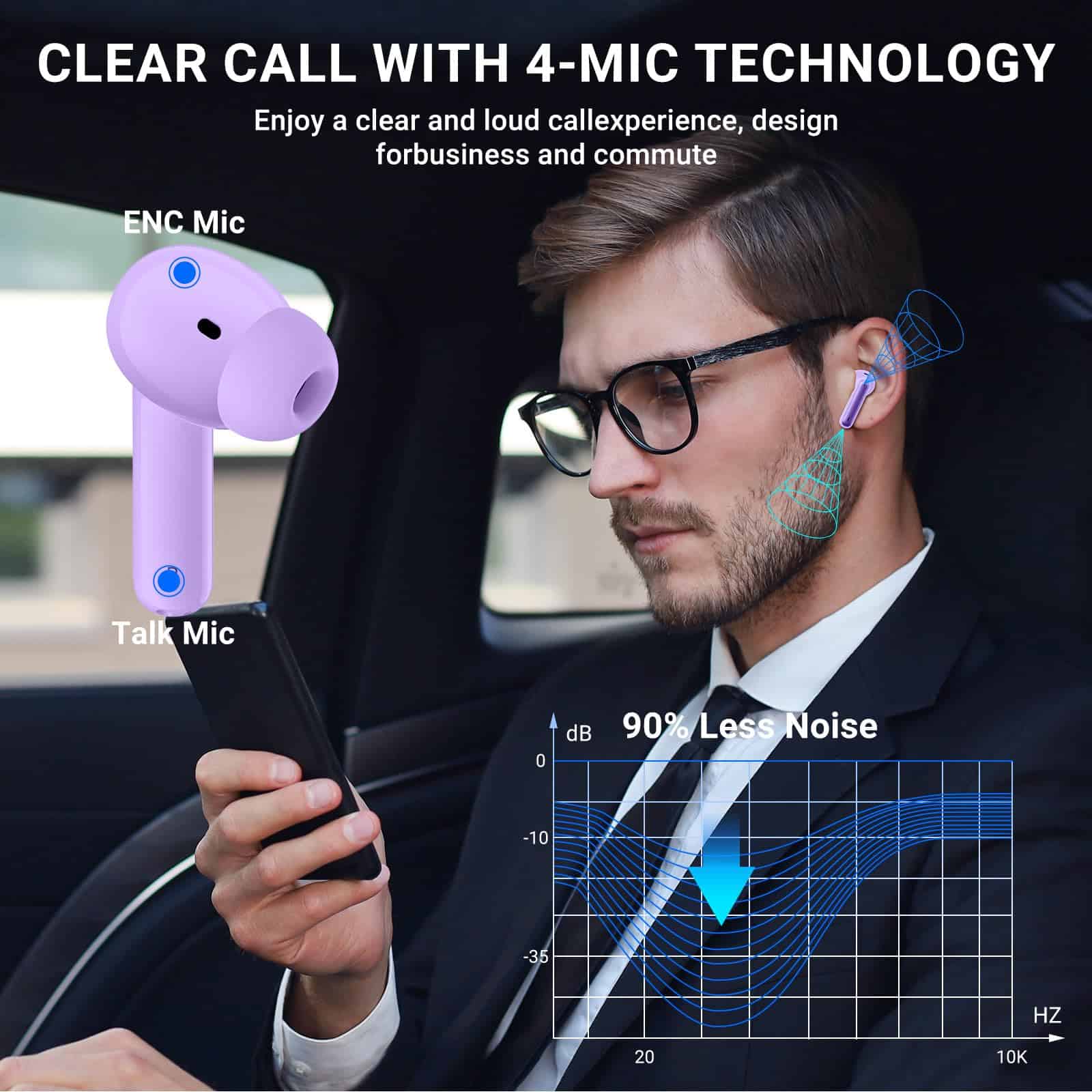 Auriculares inalámbricos con cancelación de ruido ENC y Bluetooth 5.3 para deportes