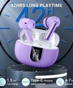 Disfruta de una calidad de sonido superior con estos auriculares inalámbricos 2024. Con 4 micrófonos de cancelación de ruido ENC, podrás tener conversaciones claras y sin interferencias. ¡No te quedes sin batería gracias a sus 42 horas de tiempo de reproducción! Compatible con Android e iOS, con pantalla de alimentación LED para mayor comodidad.