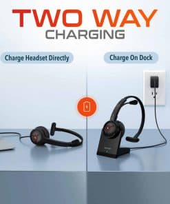 Never worry about running out of battery, thanks to the two-way charging system of our work headset with mic. You can charge the headset directly or use the dock for easy charging. This feature, along with the work headset’s intuitive controls for adjusting volume, muting, and other functions, makes it user-friendly and efficient for busy professionals who need their technology to be as flexible and adaptable as them.