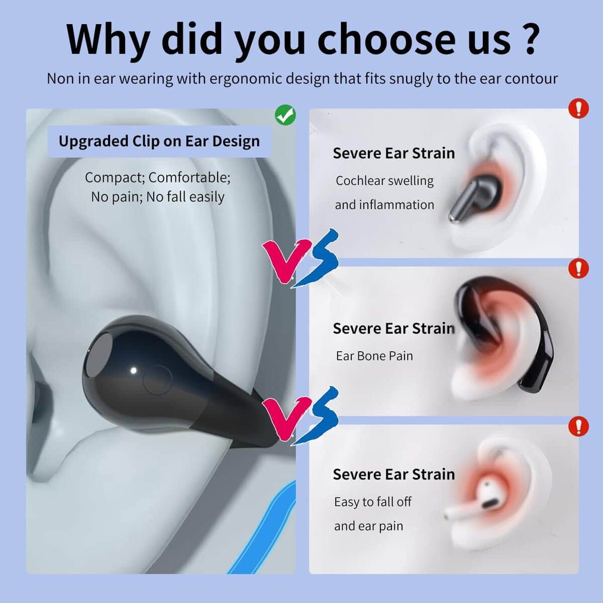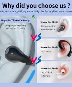 1. Auriculares verdaderamente abiertos – Los auriculares inalámbricos adoptan un diseño completamente abierto, los auriculares pueden colocarse suavemente y firmemente en la parte superior de la oreja. Los auriculares abiertos suelen ser más ligeros y transpirables que los auriculares intrauditivos, lo que los hace más cómodos de llevar durante períodos prolongados.