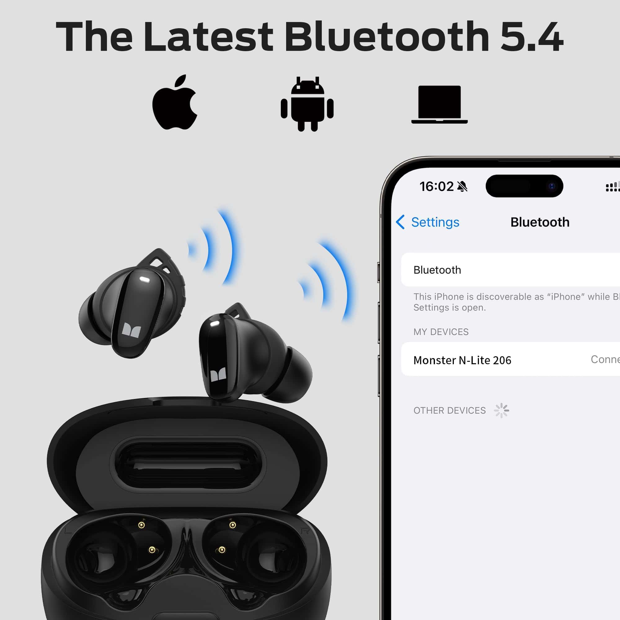 Presentamos los auriculares inalámbricos Monster N-Lite 206 con Bluetooth 5.4, diseñados para ofrecer una experiencia auditiva excepcional. Con un controlador de 10 mm que crea un bajo rico y profundo, junto con la tecnología de amplificación DSP que garantiza una distorsión mínima, estos auriculares se sumergen en un sonido realista. Su diseño ergonómico garantiza un ajuste cómodo y seguro, minimizando el ruido externo y proporcionando una experiencia de escucha inigualable. La tecnología IPX6 los hace impermeables y resistentes al sudor, perfectos para usar en el gimnasio, bajo la lluvia o simplemente para disfrutar de tu música favorita. Con hasta 25 horas de reproducción continua, una conexión Bluetooth 5.4 estable y un control táctil intuitivo, estos auriculares son la elección perfecta para los amantes de la música en movimiento.
