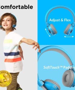 Los auriculares inalámbricos para niños pueden reproducir música durante hasta 12 horas y permanecer en espera durante 180 horas. Vienen con un cable USB para facilitar la carga y un cable de 3.4 mm con un micrófono en línea para cuando se agote la batería. También ayudan a reducir el ruido de fondo para que los niños puedan concentrarse en lo que están escuchando. También obtienes una bolsa de viaje de microfibra para guardar fácilmente cuando viajas o guardar para el uso futuro. Nuestros auriculares para niños están limitados a un volumen seguro de 93dB para proteger los oídos jóvenes. Tienen altavoces de 40 mm que producen un sonido claro y sin distorsiones. El rango de frecuencia es de 20Hz a 20kHz, asegurando una experiencia auditiva completa y equilibrada. El diseño elegante atrae tanto a los niños como a los padres, lo que lo convierte en una excelente opción para aquellos que buscan una opción de audio segura y práctica para sus hijos con un enfoque en brindar calidad de sonido digna de un adulto.