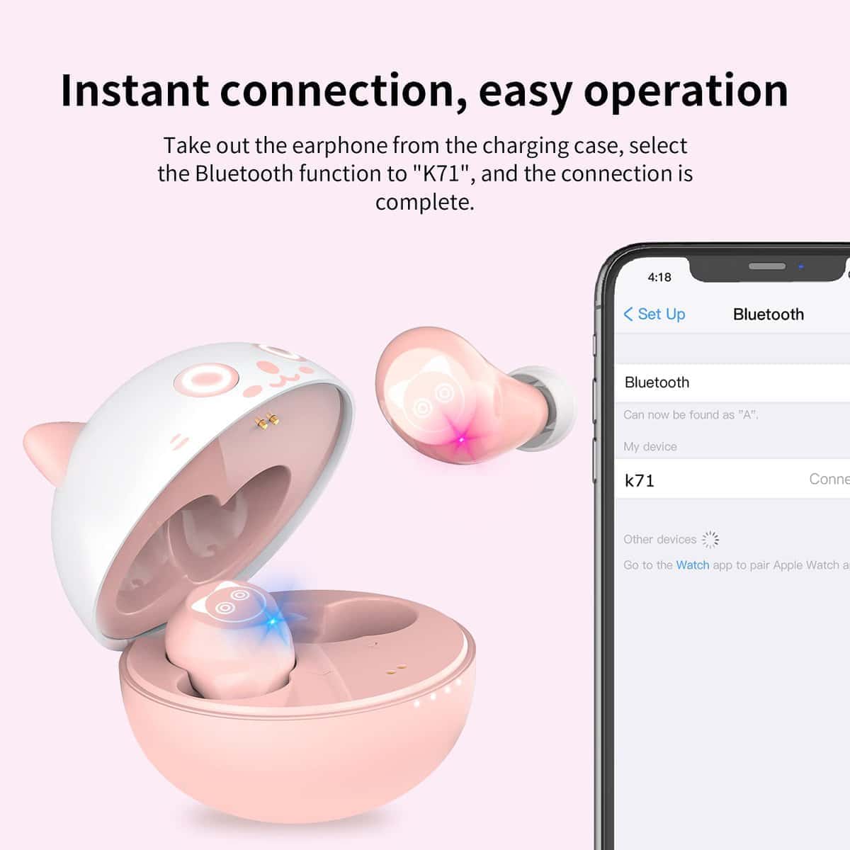 1. Diseño personalizado de dibujos animados lindo: El último diseño de estuche de carga de auriculares bluetooth inspirado en el gatito de dibujos animados, lleno de diversión. Además de la apariencia linda, estos auriculares inalámbricos también tienen protección de carga y una corriente estable que puede recargar los auriculares inalámbricos de forma más estable y rápida, muy prácticos y que vale la pena tener.