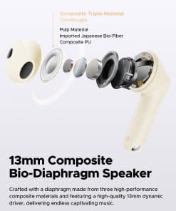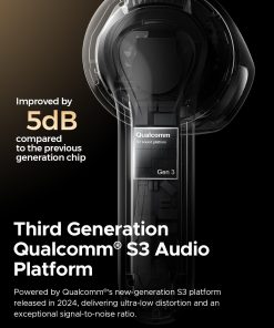 1. Plataforma de Audio Qualcomm S3 y Altavoz de Alto Rendimiento: La plataforma de audio Qualcomm S3 ofrece una distorsión ultra baja y una relación señal-ruido alta, mejorando la claridad y mejorando la calidad de comunicación. Equipado con un altavoz de diafragma compuesto de 13 mm (pulpa + biofibra japonesa importada + fibra de carbono), el diseño de hoja de níquel en forma de anillo de la batería del auricular minimiza la interferencia con el altavoz y reduce el ruido base en aproximadamente un 28.57%.