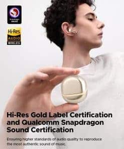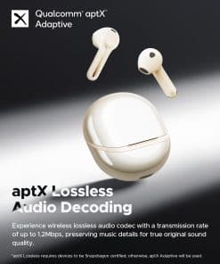 3. Audio Adaptativo Lossless aptX: Admite decodificación de audio lossless aptX adaptativo, proporcionando una transmisión de audio lossless de hasta 16 bits 44.1kHz o 24 bits 96kHz a través de Bluetooth, asegurando calidad de audio completa y clara para los amantes de la música. Air5 está certificado doblemente con el estándar de oro Hi-Res y Qualcomm Snapdragon Sound, ofreciendo fidelidad de audio de primera categoría a través de la certificación aptX adaptativa lossless.