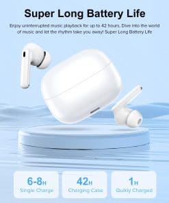 Conexión rápida y estable: Nuestros auriculares bluetooth inalámbricos están equipados con la tecnología Bluetooth 5.3 superior, que proporciona una velocidad de transmisión rápida y estable con baja latencia. Puedes conectar estos auriculares bluetooth dentro de 15 metros sin interrupciones, brindando una experiencia auditiva perfecta. Batería de larga duración: Con una duración de batería prolongada, los auriculares inalámbricos pueden usarse continuamente durante hasta 42 horas con la caja de carga, olvídate de la carga frecuente y disfruta de un uso ininterrumpido durante todo el día. Los auriculares bluetooth tienen una pantalla LED digital para ver fácilmente la energía restante. Sonido de alta calidad: Estos auriculares inalámbricos utilizan controladores de titanio de 13.4 mm y están configurados con una reducción de ruido de llamadas pensada para proporcionarte una calidad de sonido clara. Ya sea que estés escuchando música, haciendo llamadas o viendo videos, estos auriculares bluetooth te permiten experimentar un audio envolvente. Uso cómodo: El diseño ergonómico de estos auriculares bluetooth in-ear garantiza un ajuste cómodo y seguro para un uso a largo plazo y no es fácil que se caigan. Los auriculares con cancelación de ruido son compatibles con iOS, Android, PC, relojes inteligentes y otros dispositivos, lo que te permite disfrutar de tu contenido favorito en cualquier momento y en cualquier lugar. Impermeables y duraderos: Los auriculares inalámbricos con clasificación impermeable IPX7 también son ideales para correr, entrenar, hacer ejercicios, viajar y otras ocasiones, y no se dañan por el sudor o la lluvia. Al mismo tiempo, también te proporcionaremos un servicio postventa de alta calidad. Si tienes alguna pregunta, no dudes en contactarnos.