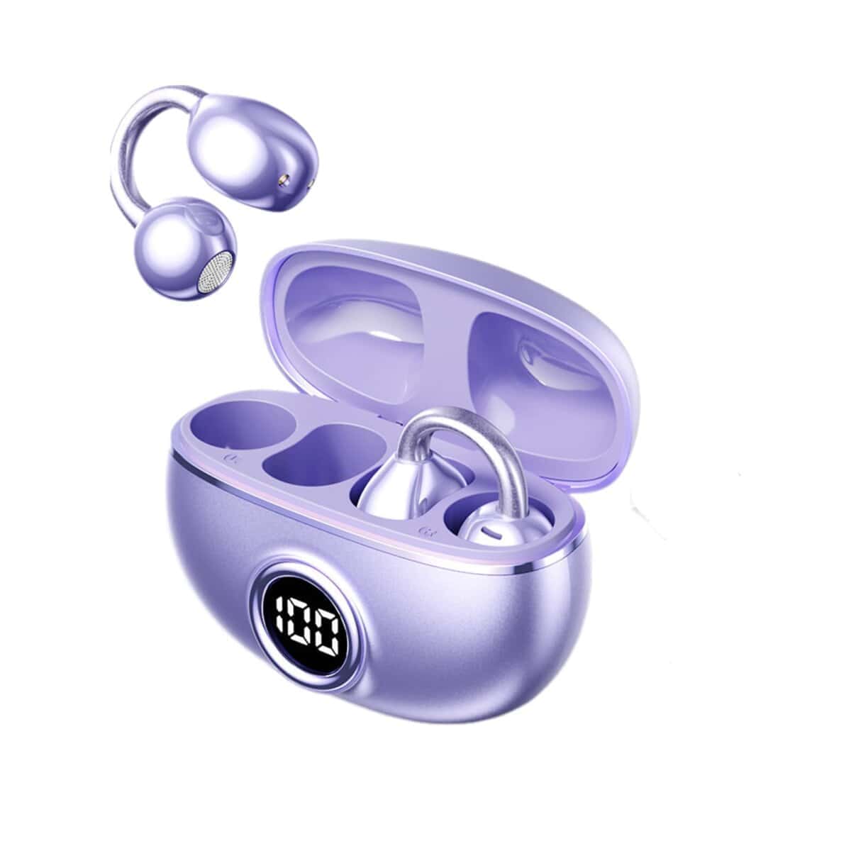 2. PANTALLA DE BATERÍA: La pantalla digital LED muestra el porcentaje preciso de la batería tanto para los auriculares como para el estuche de carga.