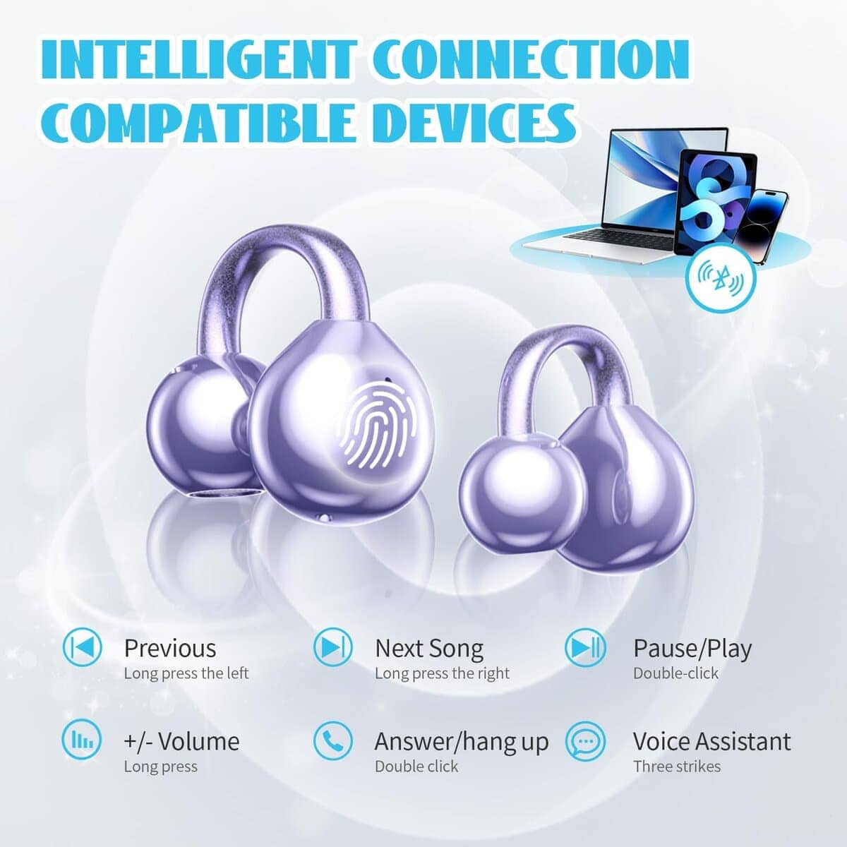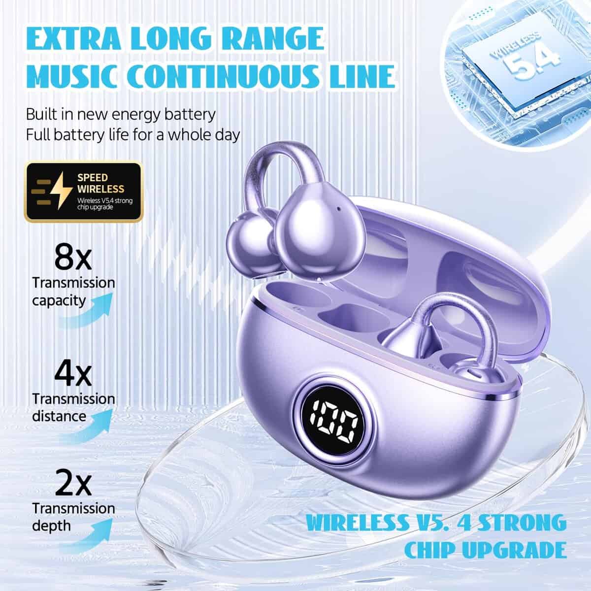 1. DISEÑO INALÁMBRICO: Auriculares inalámbricos verdaderos con ganchos para orejas ergonómicos para un ajuste seguro y comodidad durante el uso prolongado.