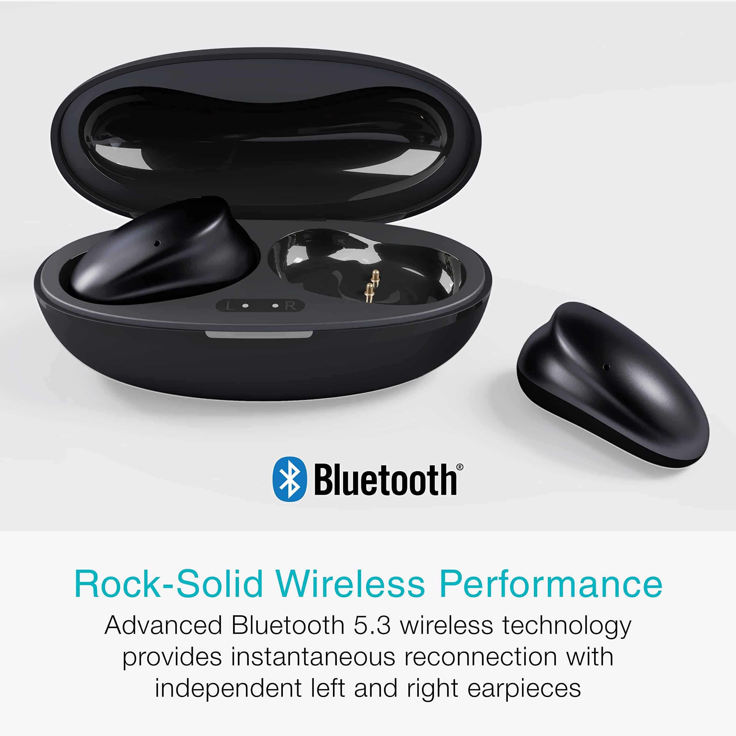4. RENDIMIENTO BLUETOOTH SÓLIDO: La tecnología avanzada de verdaderos auriculares inalámbricos con Bluetooth 5.3 proporciona una reconexión instantánea con los auriculares izquierdo y derecho de forma independiente, mientras que el modo de juego de baja latencia (habilitado al tocar cualquiera de los auriculares 4 veces) elimina el retraso entre el audio y el video para una experiencia de audio superior al jugar o ver videos.