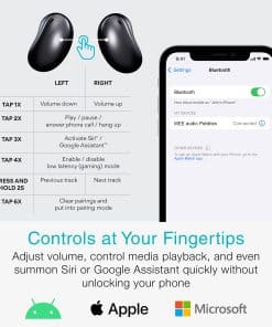 5. CONTROLES AL ALCANCE DE TU MANO: Los controles táctiles intuitivos te permiten ajustar el volumen, controlar la reproducción de medios e incluso llamar rápidamente a SIRI o Google Assistant sin desbloquear tu teléfono. Toca los controles táctiles 1 vez para ajustar el volumen, 2 veces para reproducir/pausar música y responder/colgar llamadas, y 3 veces para llamar a tu Asistente de Voz. Además, presiona y mantén presionados los controles táctiles para navegar entre pistas. ¡Es así de fácil!