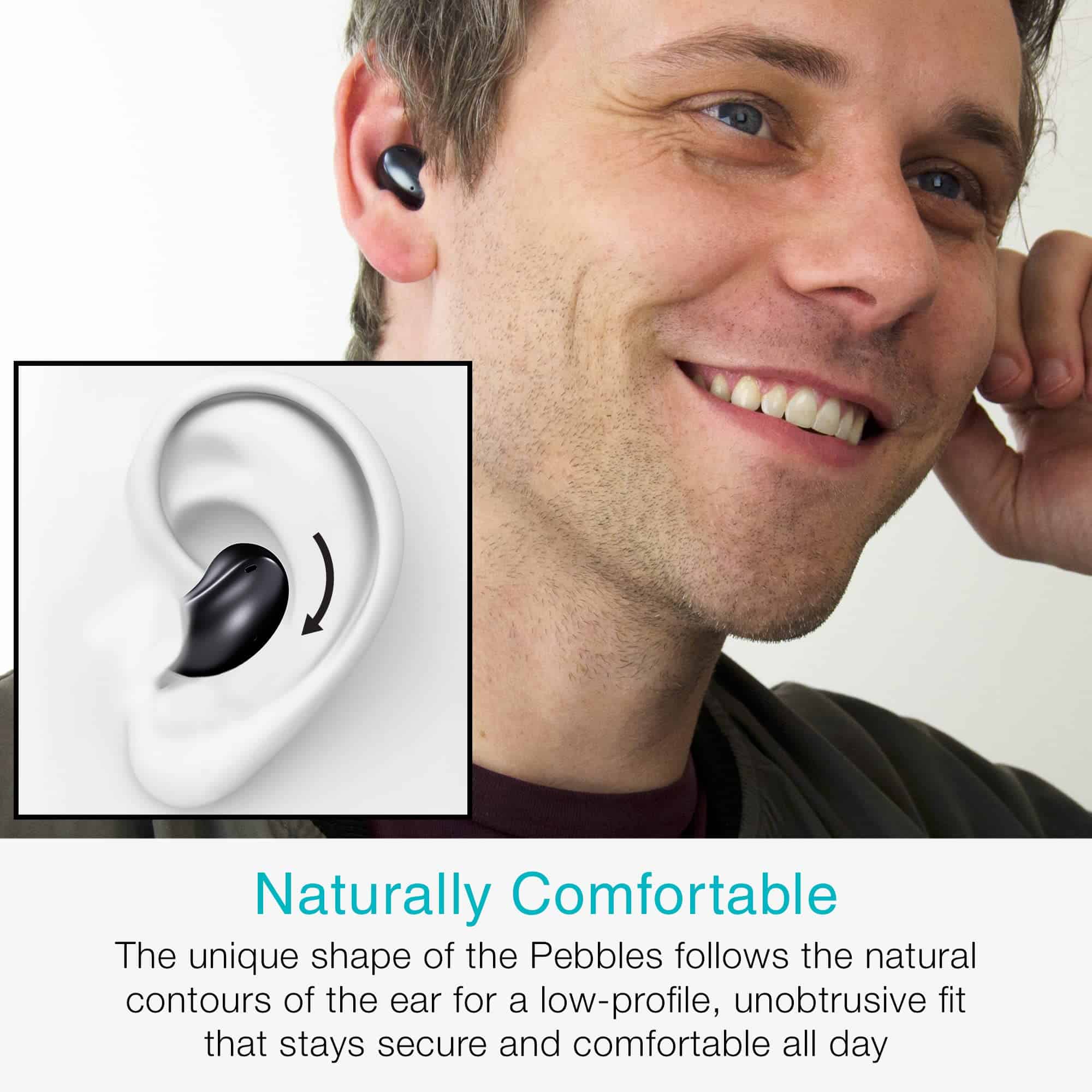 1. CÓMODA DE FORMA NATURAL: Desarrollada utilizando escaneos de orejas 3D de una variedad de orejas, la forma ergonómica de los Pebbles sigue los contornos naturales de la oreja para un ajuste discreto y de bajo perfil. Con un peso de solo 4 gramos cada uno, igual que una hoja de papel A4, los Pebbles ofrecen una comodidad excepcional durante todo el día y un ajuste notablemente seguro para cualquier ocasión, ya sea que estés haciendo ejercicio, viajando o simplemente relajándote. Nota: aunque los Pebbles son muy cómodos, no están destinados a ser usados mientras duermes.