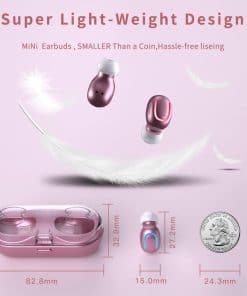 Vive la libertad de la música con estos auriculares inalámbricos verdaderos diseñados para adaptarse perfectamente a orejas pequeñas. El diseño ergonómico y liviano asegura un ajuste cómodo y seguro para cualquier forma de oreja. Con la tecnología impermeable IPX7, podrás disfrutar de tu música favorita mientras corres, entrenas, haces senderismo o incluso bajo la lluvia sin preocuparte por dañar los auriculares. La avanzada tecnología Bluetooth 5.1 garantiza una conexión estable y sin problemas, mientras que la larga duración de la batería te permite disfrutar de hasta 5 horas de reproducción continua. Además, la caja de carga portátil garantiza que nunca te quedes sin batería mientras estás en movimiento. Con una amplia compatibilidad con dispositivos Apple, Samsung, LG, Sony, HTC y más, estos auriculares son la opción perfecta para cualquier amante de la música en busca de comodidad y calidad de sonido. ¡No esperes más y experimenta la libertad de la música inalámbrica con estos increíbles auriculares!