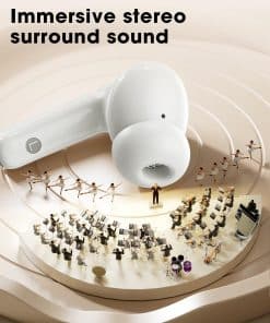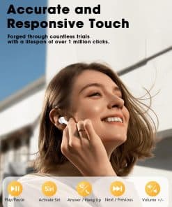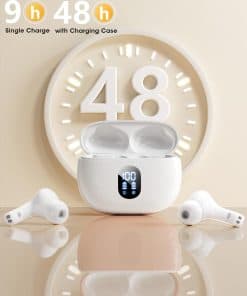 Los auriculares inalámbricos T18 ofrecen una autonomía de hasta 48 horas para disfrutar de una escucha ininterrumpida. Además, la pantalla LED de la funda de carga muestra la autonomía restante de la funda y el estado de carga de los auriculares, permitiéndote monitorear los niveles de energía en tiempo real y el uso de los auriculares Bluetooth. Con la última tecnología Bluetooth 5.3, disfruta de un emparejamiento ultrarrápido y conexiones estables. Una vez que los auriculares T18 se sacan de la funda de carga, se conectan sin esfuerzo. Con un rango de transmisión Bluetooth de hasta 33 pies, estos auriculares ofrecen una conexión más estable sin latencia. Además, los auriculares se emparejarán automáticamente y serán compatibles con varios dispositivos. Diseñados para resistir, los auriculares T18 cuentan con tecnología de recubrimiento impermeable IPX7 para sellar la superficie de ambos auriculares Bluetooth, evitando que el sudor o la lluvia penetren. Estos auriculares están hechos para durar, por lo que son aptos para su uso durante sesiones de ejercicio y actividades al aire libre. El estuche de carga rápido para auriculares inalámbricos está equipado con un puerto Type-C para una carga más rápida. Puedes usar el cable USB Type-C incluido de los auriculares Bluetooth para cargar la funda con cualquier adaptador de carga compatible (no incluido). La pantalla dual LED digital muestra la autonomía restante de la funda y el estado de carga de los auriculares.