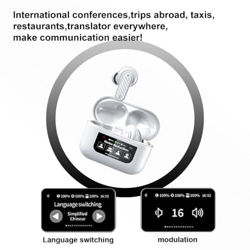 7. Calidad de Sonido de Alta Definición y Tecnología de Cancelación de Ruido: Los auriculares traductores ofrecen una experiencia inmersiva de escucha de música y una calidad de llamada clara. La tecnología avanzada de reducción de ruido activa integrada reduce eficazmente el ruido de fondo, garantizando una transmisión de voz clara.