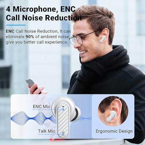 4. 3 en 1 Funciones: Equipados con control táctil inteligente, puede realizar operaciones de reproducción de música, gestión de llamadas y traducción simplemente tocando, los auriculares están diseñados pensando en la ergonomía, brindando un ajuste cómodo para un uso prolongado.