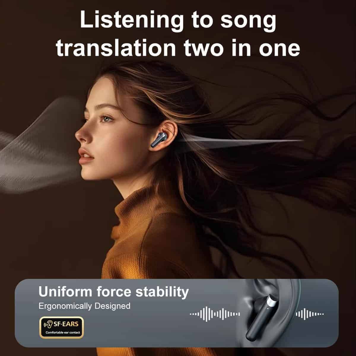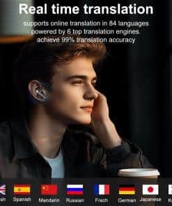 4. Estos auriculares traductores de idiomas están equipados con una batería de alta eficacia para un uso diario. El diseño ligero facilita su transporte y el estilo de uso lo hace cómodo.