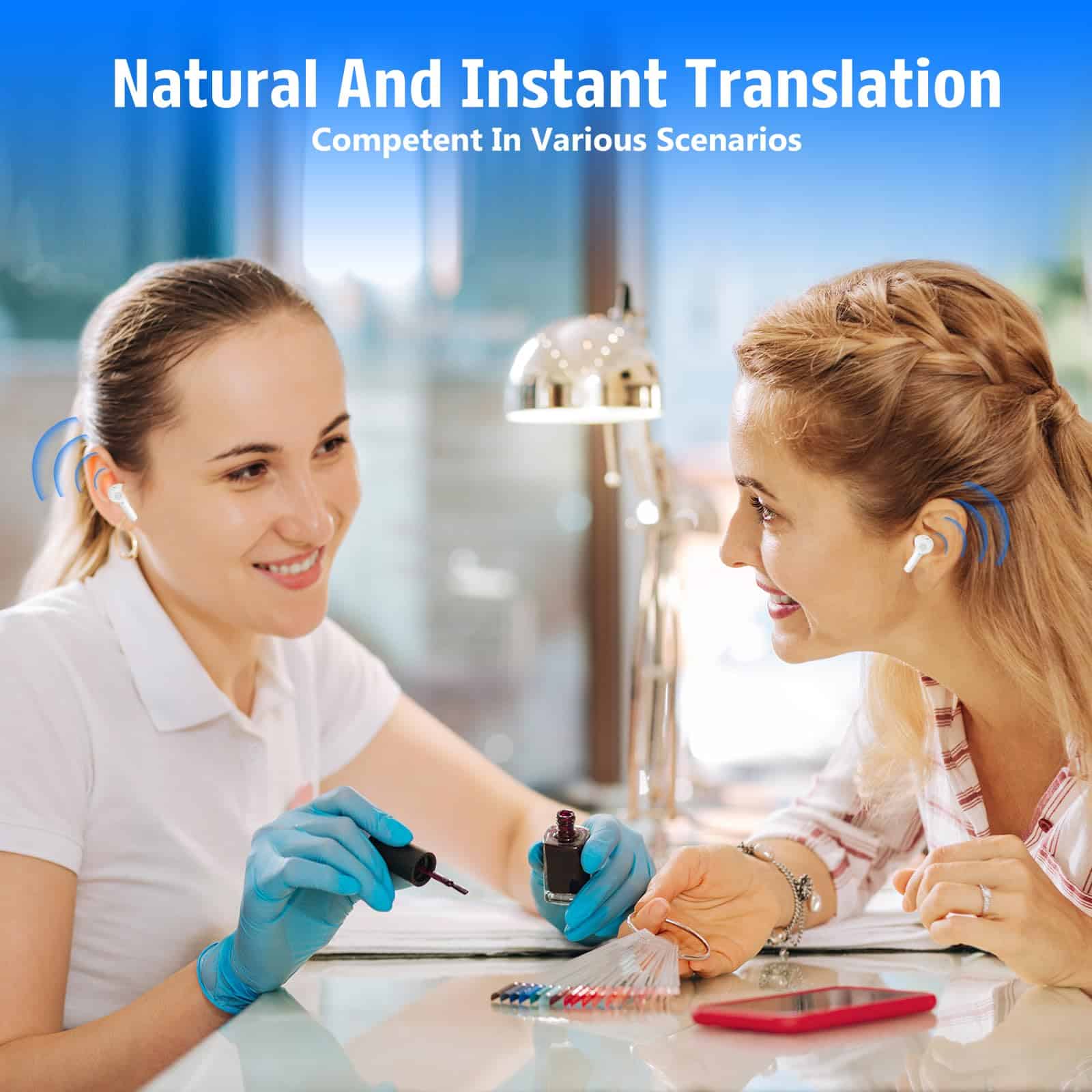 2. Auriculares inteligentes de traducción de voz: admite traducción instantánea bidireccional en tiempo real en 144 idiomas, cubriendo la mayoría de países y regiones de todo el mundo. También ofrece chino, inglés, japonés, coreano, ruso, alemán, francés y español, y se pueden adquirir paquetes de traducción sin conexión a través de compras dentro de la aplicación para mayor comodidad.