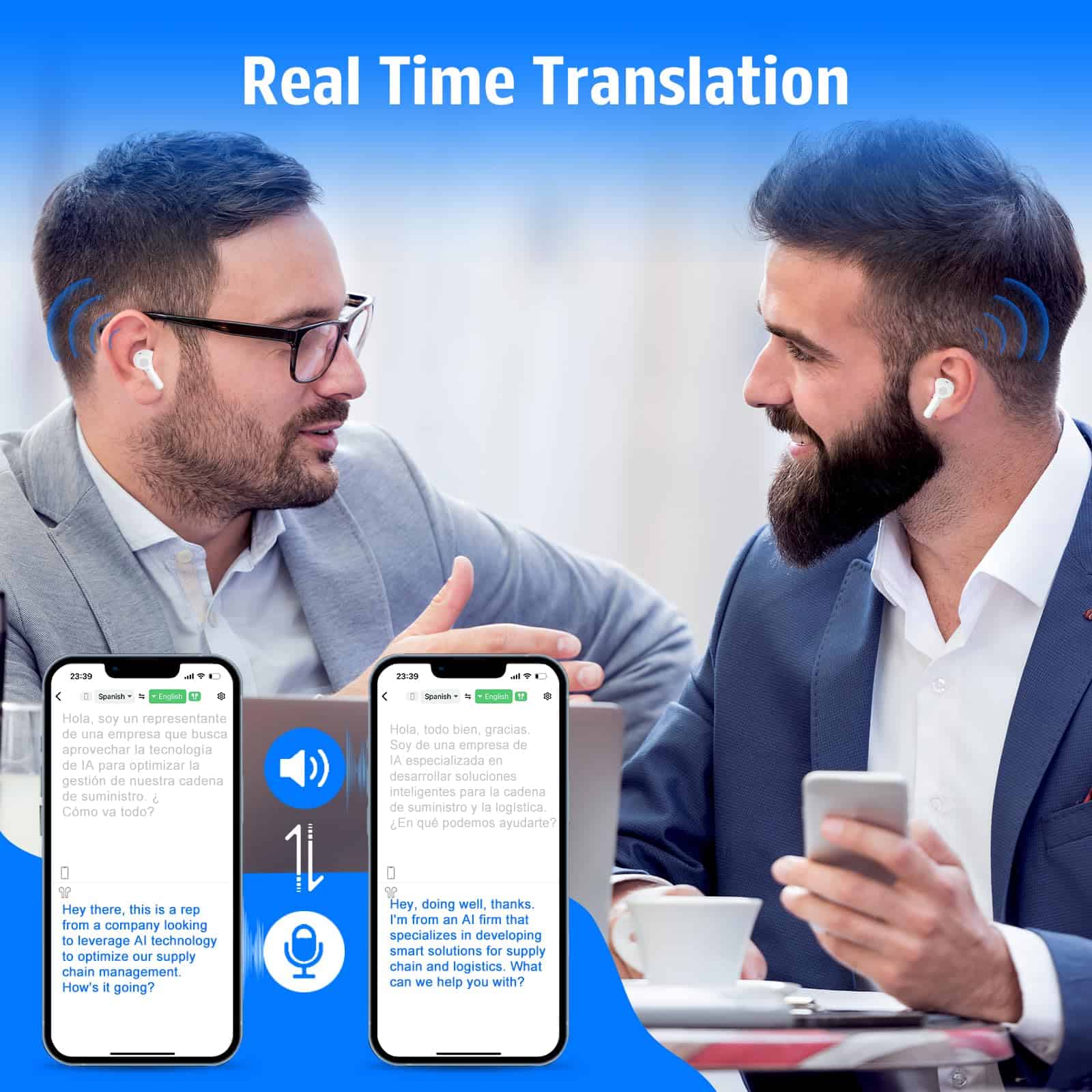 1. ALTA PRECISIÓN DE TRADUCCIÓN EN TIEMPO REAL: Auriculares de traducción Bluetooth en tiempo real que admiten 144 idiomas en línea con hasta un 98% de precisión, conecte fácilmente a nivel mundial y comunique sin problemas. No hay necesidad de pagar, la velocidad de traducción es solo de 0.5 segundos, experiencia de traducción fluida. Adecuado para conversaciones uno a uno, reuniones, presentaciones y otros escenarios diversos.