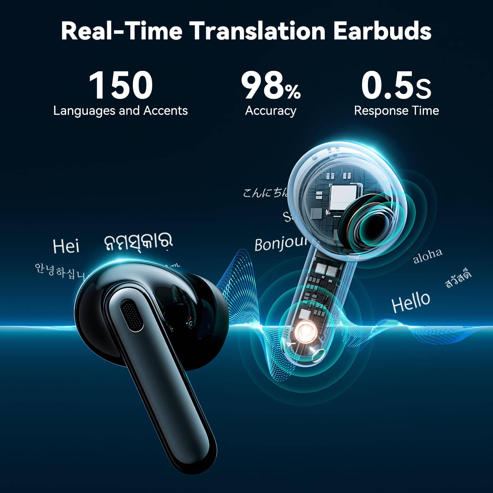 1. Auriculares de Idiomas con Traducción AI Estos Auriculares Traductores de Idiomas pueden traducir 150 idiomas en tiempo real, con hasta un 98% de precisión y un tiempo de respuesta de solo 0.5 segundos. Puedes comunicarte con personas de todo el mundo, ya sea que estés viajando, asistiendo a una reunión de negocios o simplemente hablando con amigos.