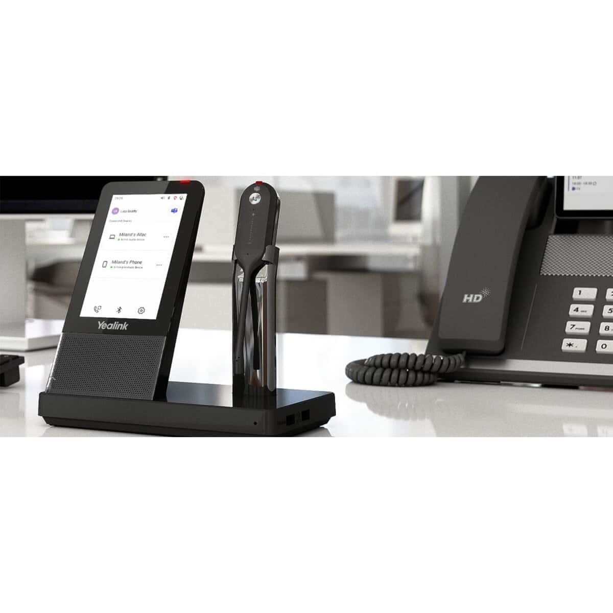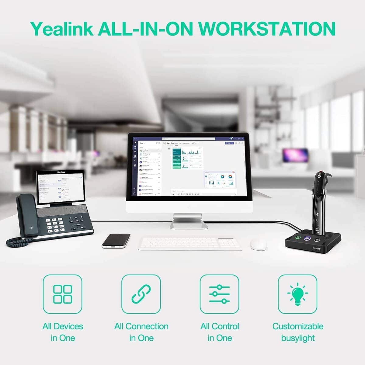 Estación de Trabajo UC Todo en Uno Redefine tu espacio de trabajo, Los auriculares WH67 de Yealink son los líderes de la industria en auriculares inalámbricos DECT convertibles, abriendo una nueva forma de colaboración en el escritorio. Trabaje de forma transparente con las principales plataformas UC e integre de forma nativa con los teléfonos IP de Yealink. La pantalla táctil capacitiva de 4.0 pulgadas (480 x 800) de la base ofrece una nueva experiencia de trabajo, con solo tocar, todo el control. Actúa como una estación de trabajo, gestionando llamadas telefónicas, conectándose con múltiples dispositivos (teléfono de escritorio/teléfono móvil/computadora), cargando el teléfono móvil de forma inalámbrica e incluso desempeñando el papel de altavoz. Lo mejor de todo es que implementar una estación de trabajo multifuncional solo necesita enchufarse directamente. Las cosas más sencillas de hacer, la mayor comodidad para disfrutar.,Estación de Trabajo UC Todo en Uno,La colaboración en el escritorio aumenta la eficiencia mucho, especialmente cuando Trabaja desde Casa, pero también puede resultar molesto que el escritorio esté muy desordenado con múltiples cables de dispositivos. Tome el control de su entorno de colaboración en el escritorio con WH67:,Sea Escuchado con Claridad Cristalina,Con la Tecnología Acoustic Shield de Yealink, los dos micrófonos incorporados en WH67 bloquean automáticamente el ruido de fondo pero aseguran que la voz del participante se escuche con claridad, aumentando enormemente la eficiencia de la comunicación,Sin Interrupciones,Se habilita el busylight en WH67. Con la luz en el auricular o el BLT60 en el escritorio se enciende en rojo, las personas a su alrededor sabrán que está al teléfono, en lugar de interrumpirlo sin saberlo. Simplemente mantente enfocado en la conversación, para una mayor eficiencia, para una mejor colaboración.,Tecnología Acoustic Shield,Experiencia de Audio Optima,Pantalla Táctil LCD,Conexión de Múltiples Dispositivos,Modo Altavoz,Concentrador USB Incorporado,Cargador Inalámbrico Qi,Busylight Personalizable,Conecta todos los dispositivos que desees con Bluetooth integrado y puerto USB.,Expande la conectividad de la PC con el concentrador USB de 2 puertos.,Controla todas las llamadas en la pantalla táctil capacitiva de 4.0 pulgadas (480 x 800) con solo tocarlo con el dedo.,Funciona como un teléfono manos libres, liberándote de llevar auriculares.,Carga el teléfono móvil de forma inalámbrica y transfórmalo en un dispositivo de conferencia eficiente.