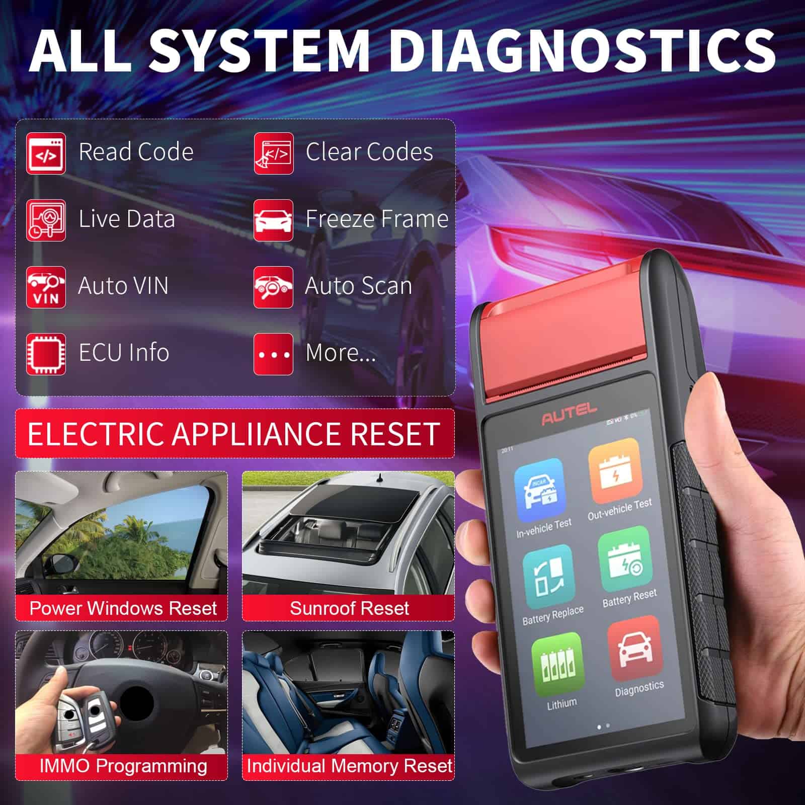 2. Probador de Baterías Profesional y Analizador del Sistema Eléctrico Autel BT608E adopta la tecnología de conductancia adaptativa, capaz de probar baterías de 6V-12V y realizar análisis en arranques de 12V-24V y generadores con una precisión líder en la industria. A diferencia de los probadores de baterías tradicionales, el BT608E es capaz de diagnosticar baterías de baja capacidad, reducir la recarga y retestar en un 30% y garantizar una tasa de precisión del 95% en el diagnóstico. Además, tiene una descarga de 30A (10A para el antiguo método de perfilado de conductancia) para una prueba de batería más rápida. 3. Registro de Baterías y Reinicio de BMS Como herramienta de análisis de baterías profesional, Autel BT608 (E) soporta función de reemplazo de baterías (Sugerencia de Tipo de Batería, Preparación, Pasos de Reemplazo de Batería, Prueba de Batería Nueva y Registro de Batería) en el vehículo y puede realizar el reinicio de BMS. Además, BT608E soporta funciones de reinicio en electrodomésticos específicos como ventanas eléctricas, techo corredizo, etc. en vehículos específicos. Función Avanzada: Historial de uso de la batería para BMW. 4. Funciona Como Escáner OBD2 General Autel MaxiBAS BT608 (E) también es una potente herramienta de diagnóstico automotriz con capacidad de diagnóstico de sistema completo, capaz de acceder a todos los módulos disponibles para leer/borrar códigos, recuperar información de la ECU, Datos de Fotograma Congelado, obtener datos en vivo en forma de texto y gráfico. La función de diagnóstico de todos los sistemas es la misma que el escáner Autel MaxiCOM MK808S & MK808BT Pro. Nota: BT608E solo puede realizar el diagnóstico de todos los sistemas y no puede realizar otras funciones disponibles en estos dos modelos. 5. Configuración y Diseño Amigable para el Usuario En comparación con el escáner de tablet Autel, Autel BT608 (E) adopta un diseño más compacto y configuraciones más prácticas: adopta una cámara de 8MP para una identificación de vehículos más fácil (Escaneo de Licencia y Escaneo de VIN); Impresora térmica incorporada para compartir e imprimir fácilmente informes de prueba; sistema operativo Android 9.0 y batería de 5000 mAh para un funcionamiento suave y trabajo continuo de larga duración.
