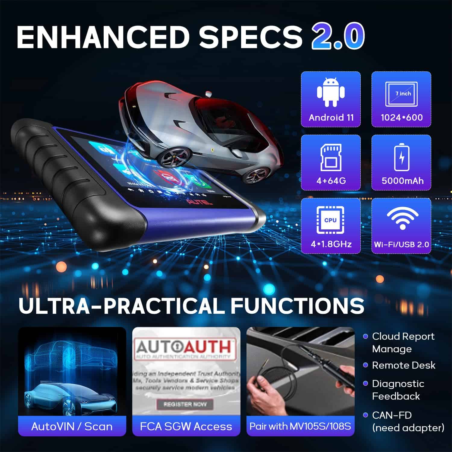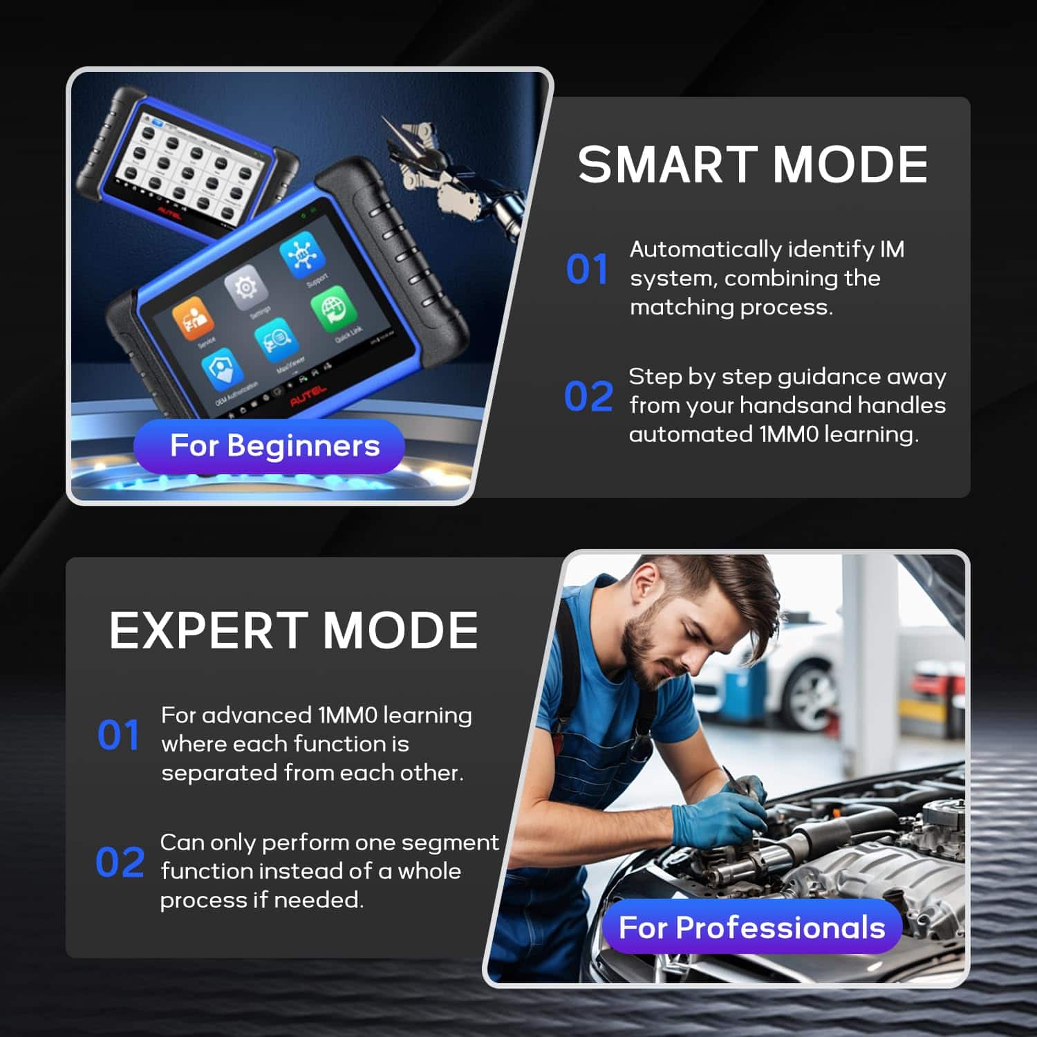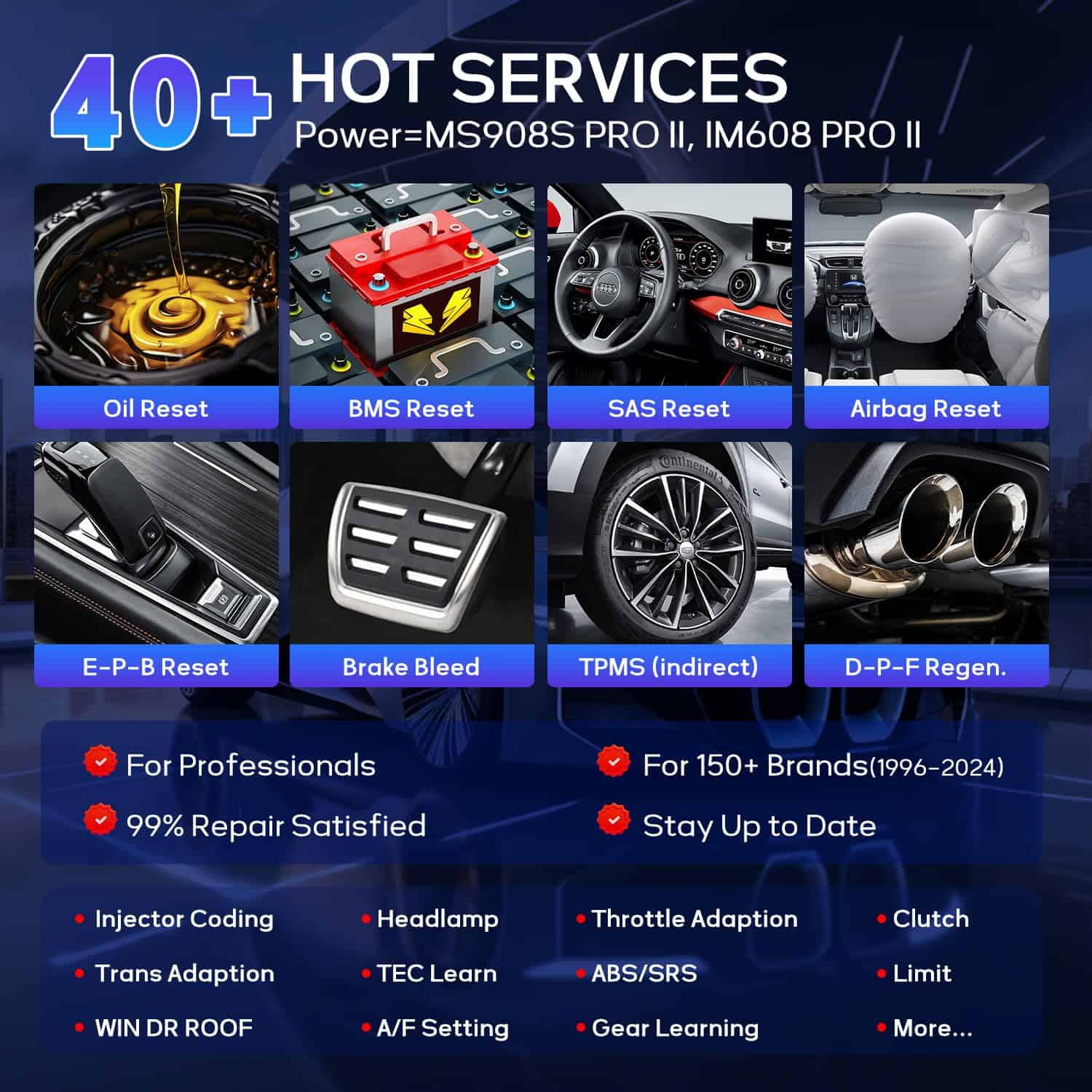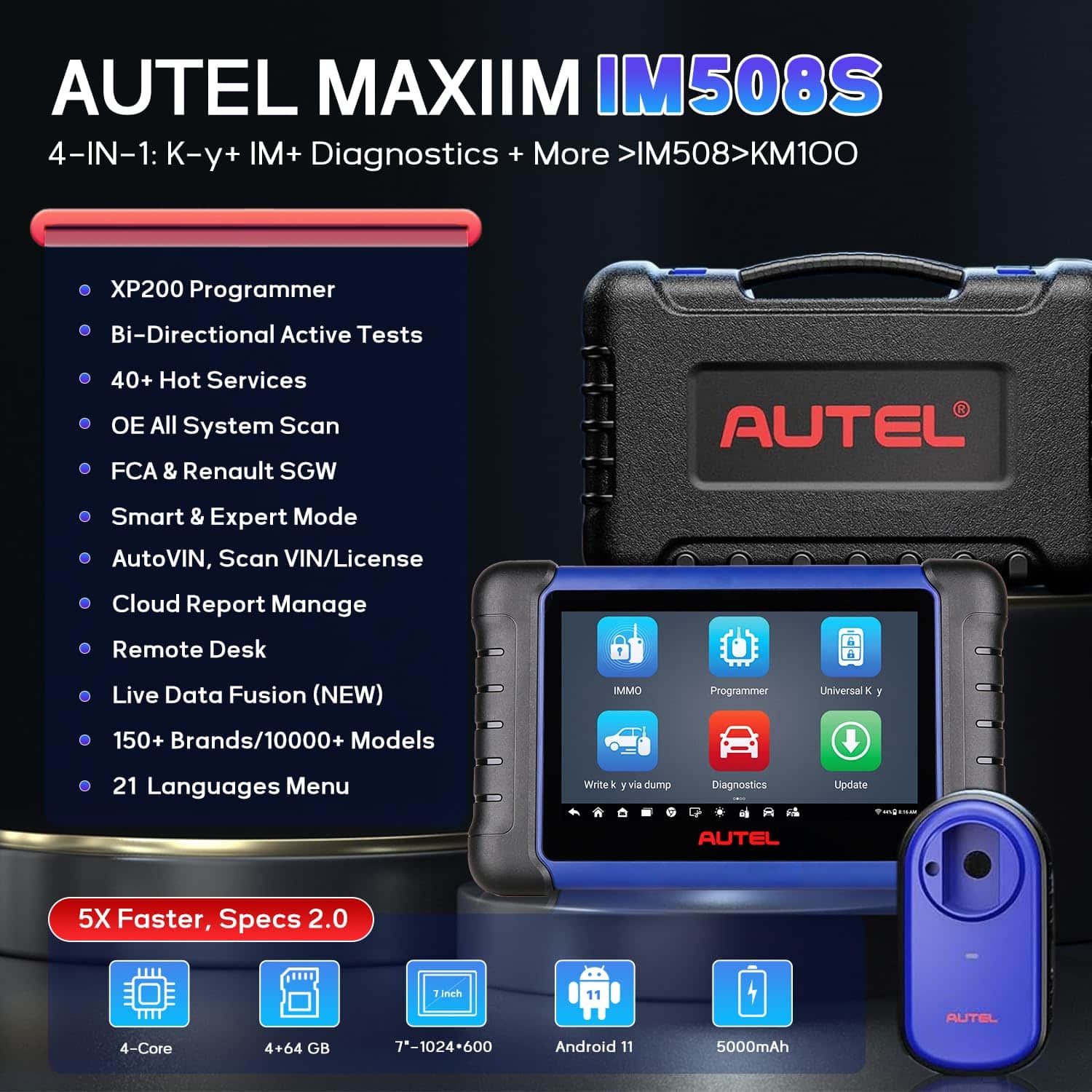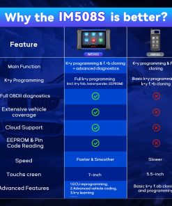 Además, el IM508S ofrece un diagnóstico de nivel OE para todos los sistemas de vehículos, permitiendo la lectura de códigos, borrado de códigos, visualización de datos en vivo y congelados, entre otras funciones en una amplia gama de vehículos de EE. UU., asiáticos y europeos. También cuenta con más de 40 funciones de servicio, incluyendo reinicio de aceite, EPB, SAS y TPMS.